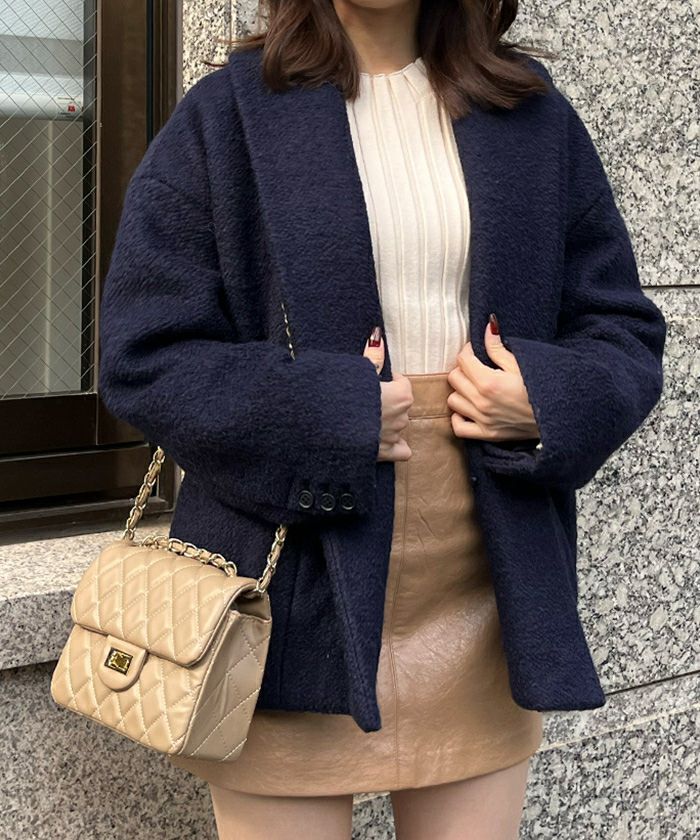 身体を包み込む丸みが愛らしいショートコート。