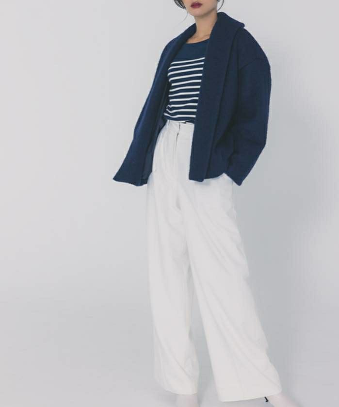 同色のホックを下部に設けることで、ざっくりとした抜け感を保ちつつも、まとまりのあるシルエットを叶えます。