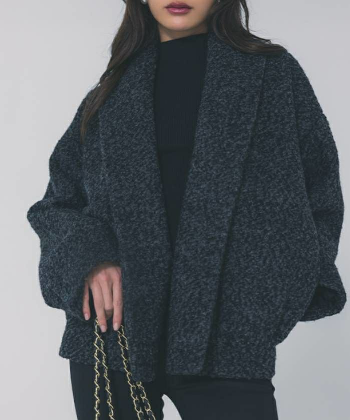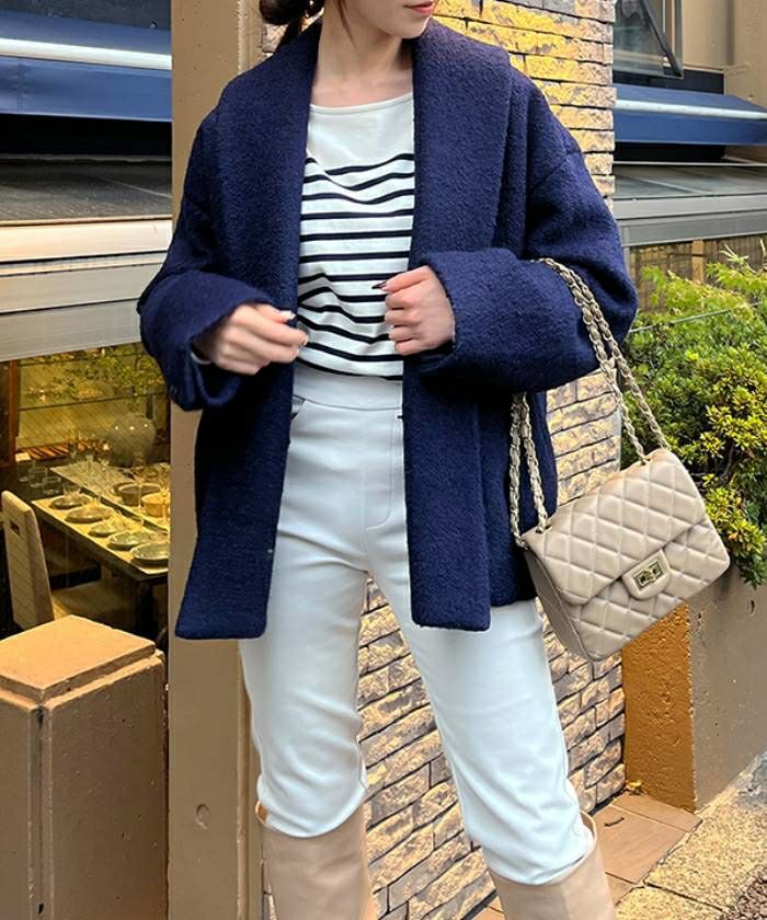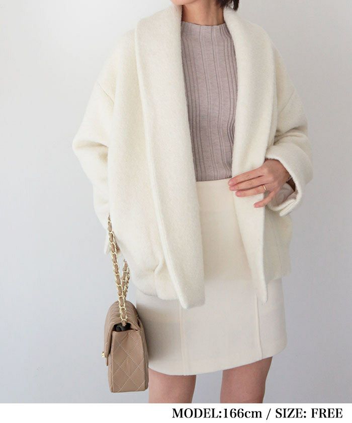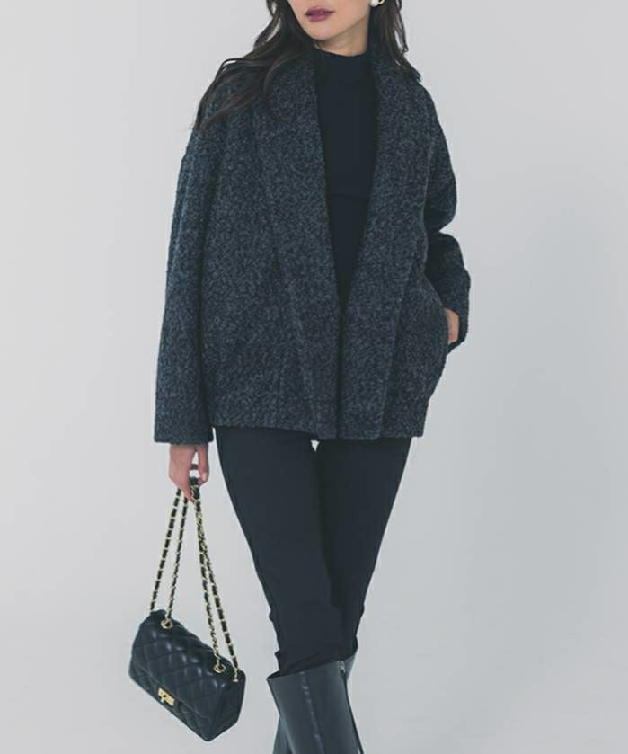 シーズンムードが高まる上品なブークレ素材に、内側には中綿を忍ばせることで、