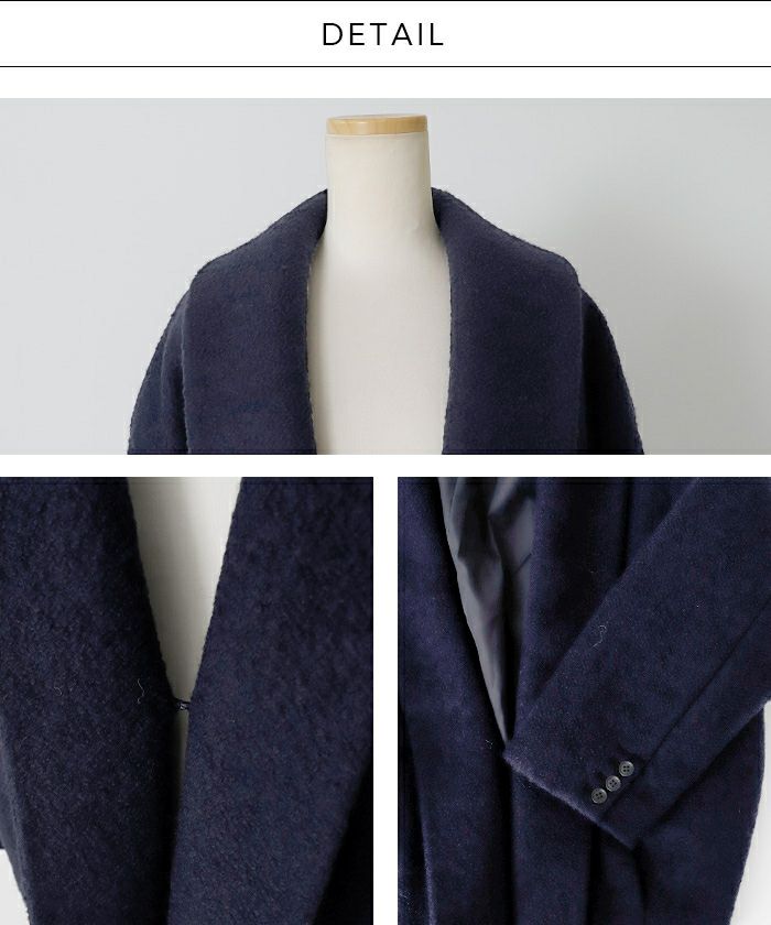 フロントは装飾を削ぎ落とした、クラシカルなショールカラー。