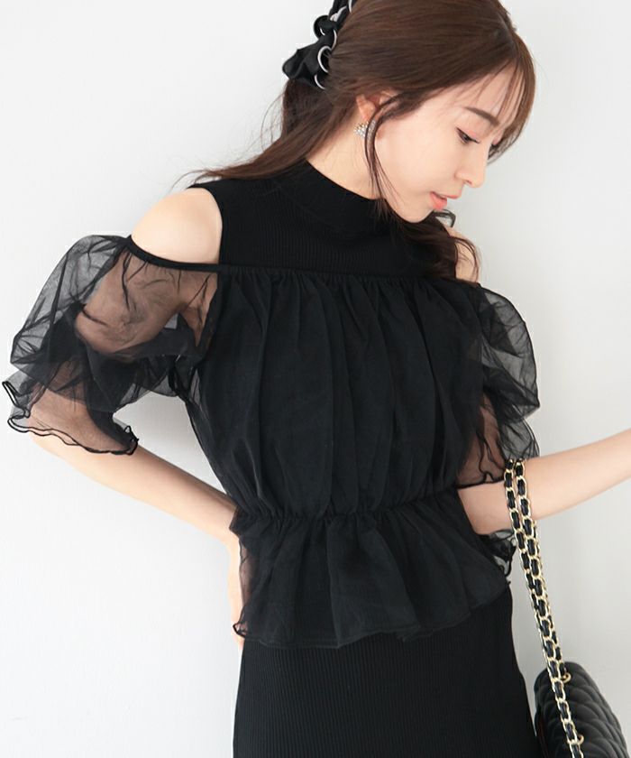 【期間限定★SALE】 ダブルチュールオフショルダートップス