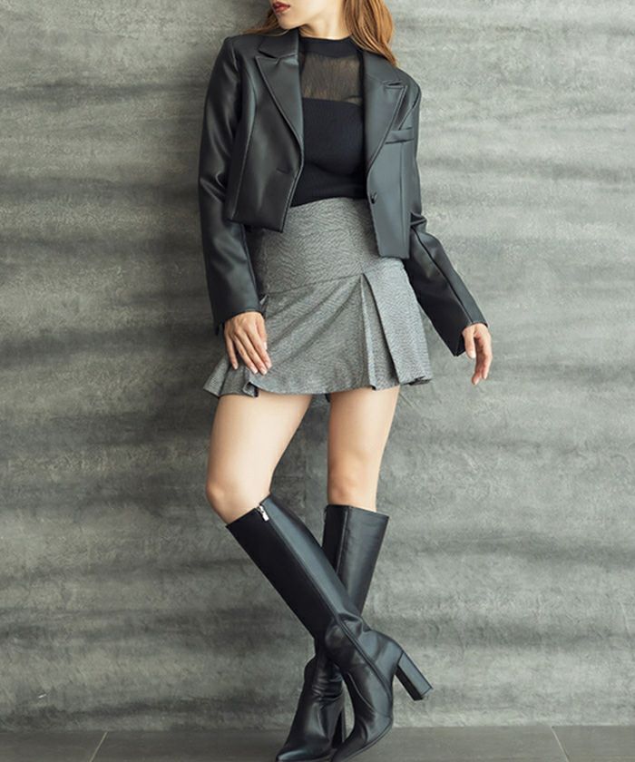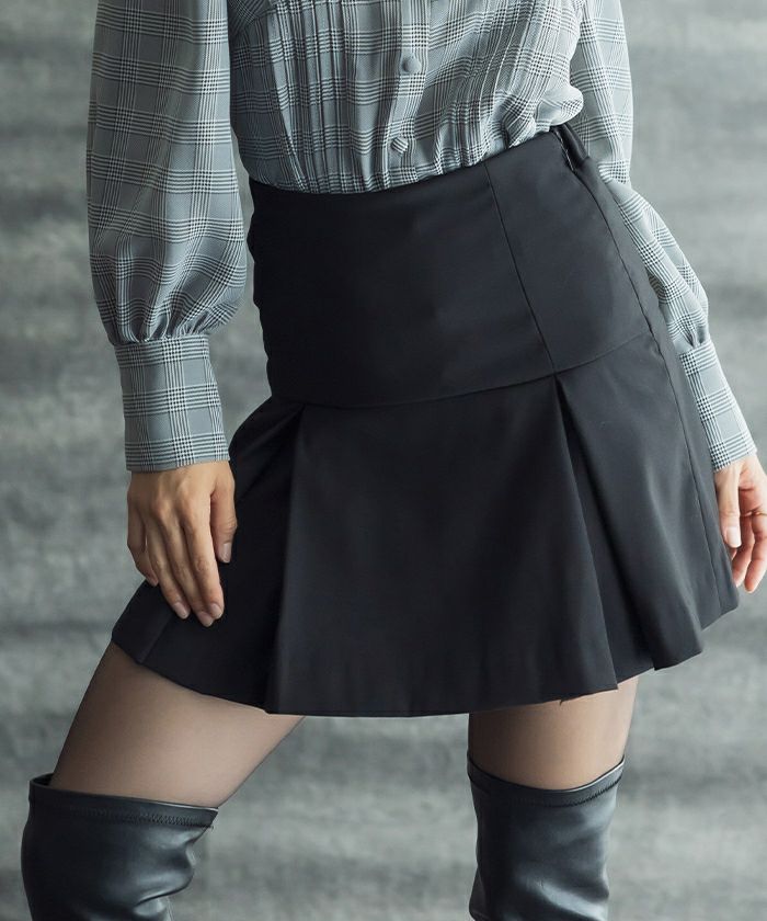 一見台形スカートのようなコンパクトなフォルムですが、歩くたび動きの出るボックスプリーツ仕様で、デザイン性の高いスタイリッシュな一枚に。