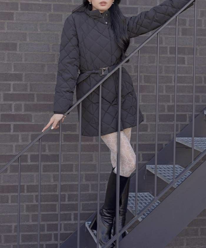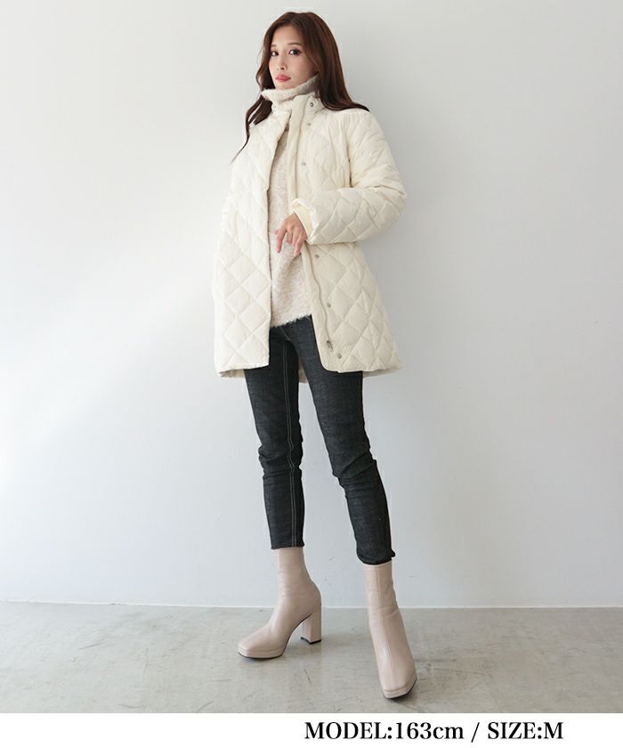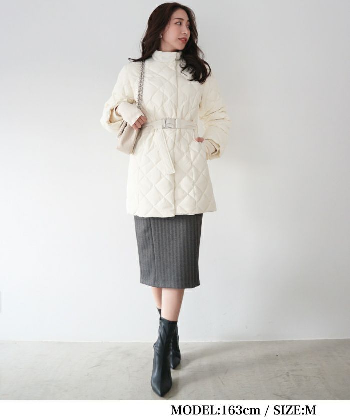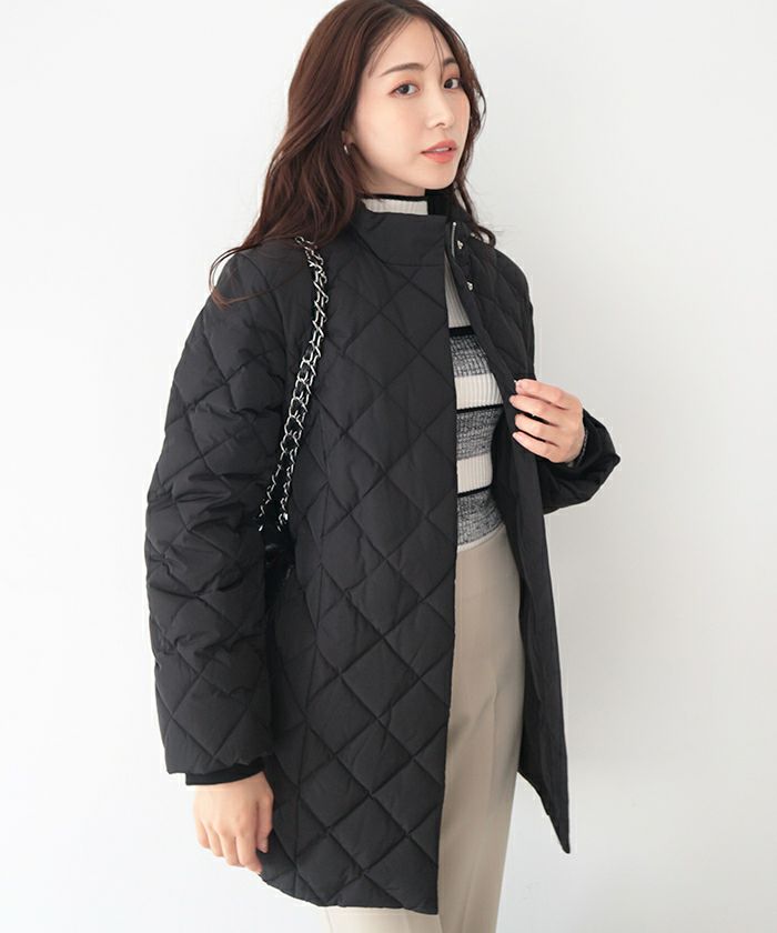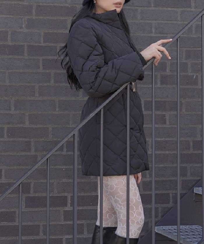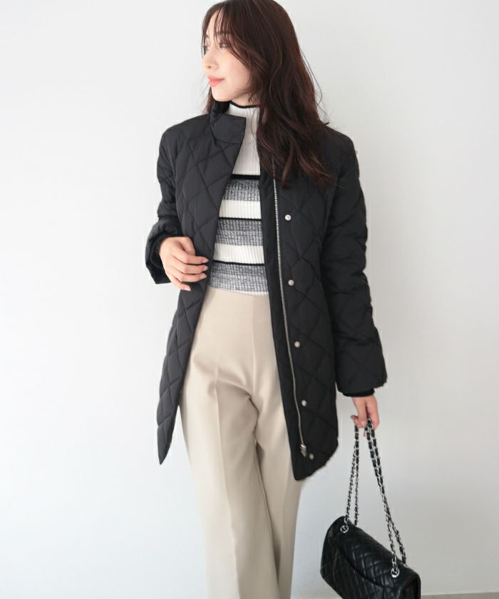 アイコニックなダイヤ柄キルティングを全面に施した、キレイめなミディアム丈。