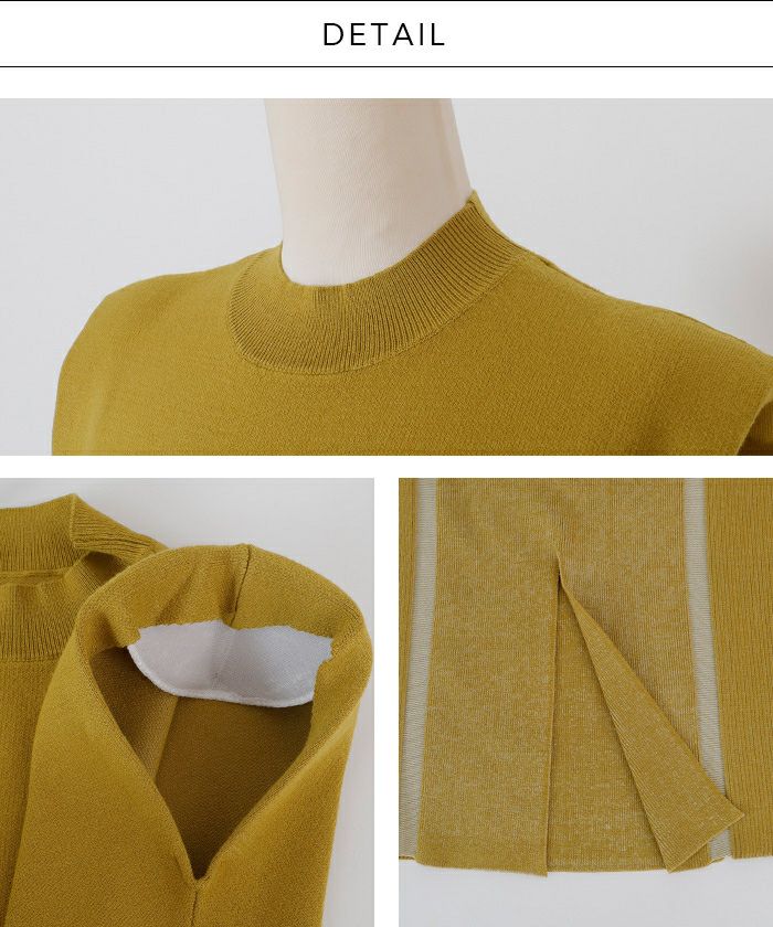 また、このラインを軸に中心とサイドのリブ幅を変えたことで色の見え方も変わり、一枚で着映えしつつさりげなく体型カバー効果も。伸縮性たっぷりで心地よくフィットしながらスタイリッシュなムードに仕上げてくれる逸品。