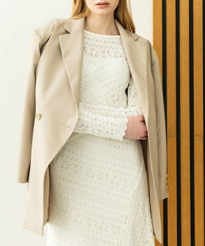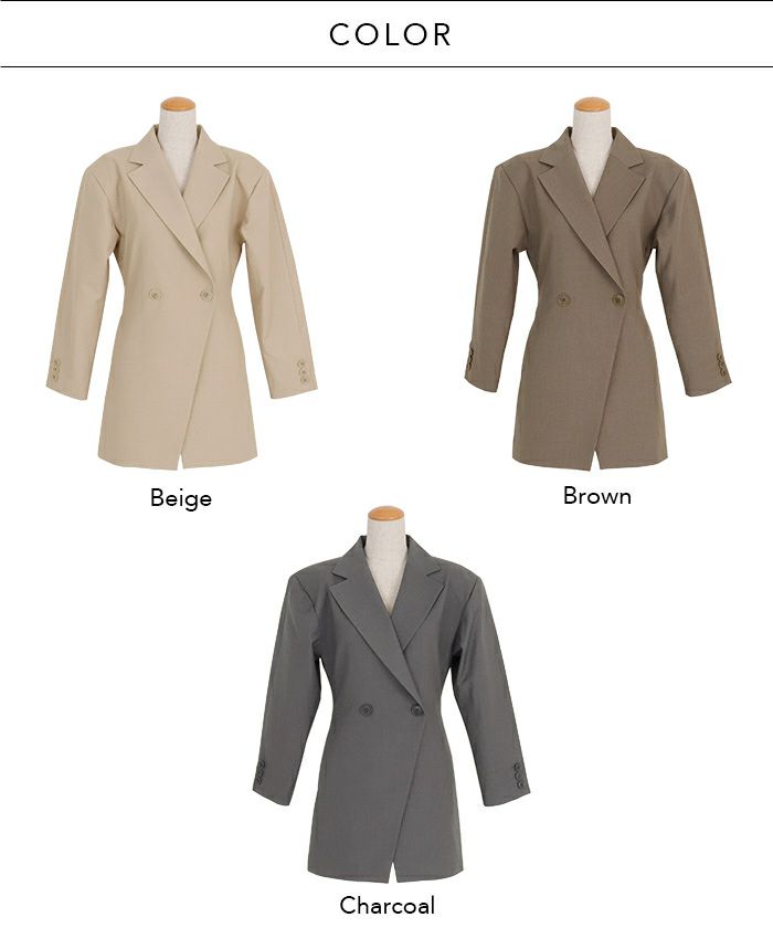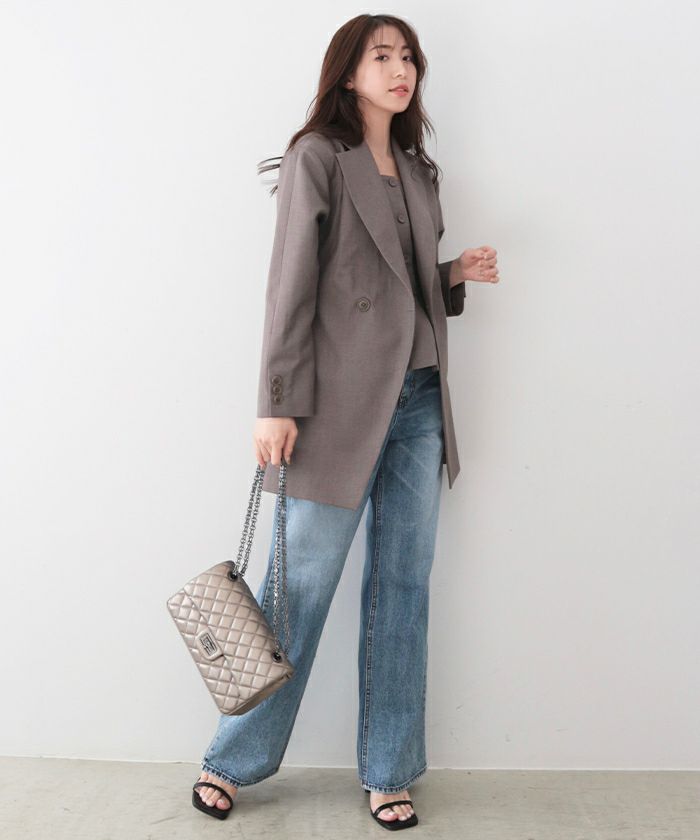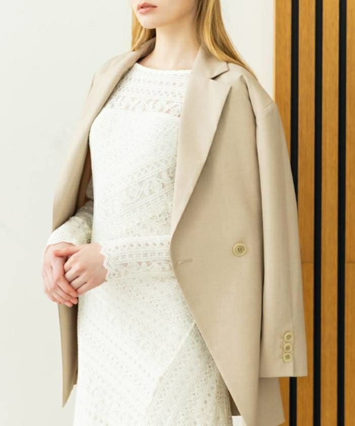 肩パッド入りのオーバーサイズなショルダーラインからウエストに向けてすっきりとシェイプされていくシルエット。