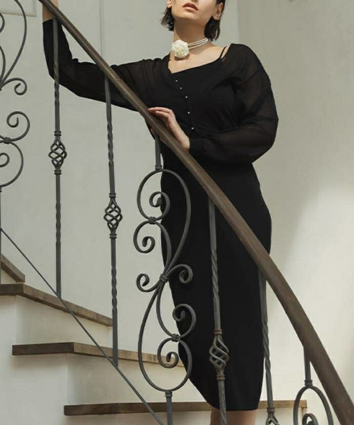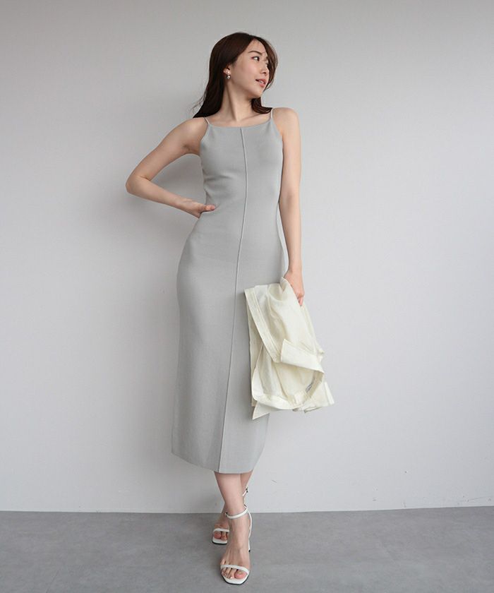 商品情報 晩夏まで涼しく着ていただけるペンシルニットドレス。
