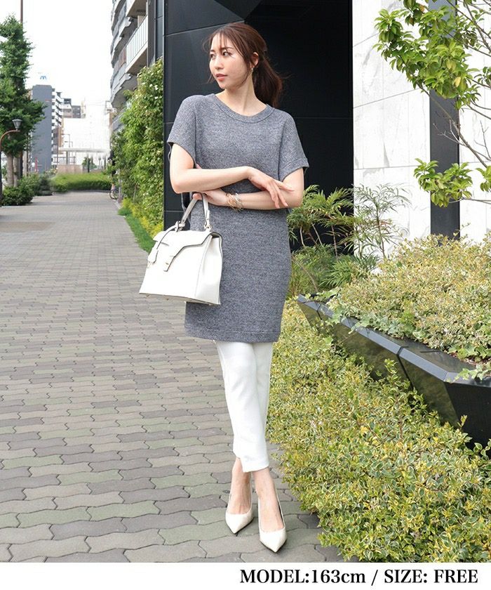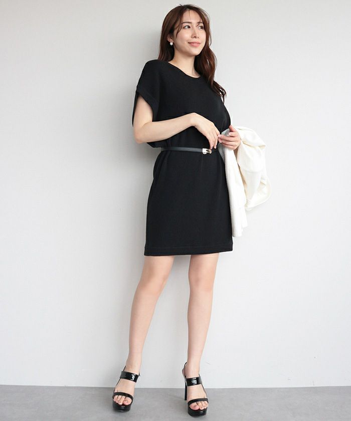 体のラインを拾わない分、潔いミニ丈に設定したことでスタイルバランスが整います。