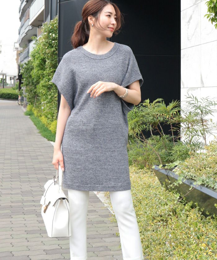 頑張ってないリラックスした雰囲気ながら、大人っぽくクラス感のあるイメージで着れそうなデザインが気に入りネイビーを購入しました。 ざらっとしたかんじのニットで、痛みにくそうなところが良いですが、重さは感じる素材です。 脇が大きく空いているので、キャミソールもいいですが、モダールなどサテン系の素材ではないスリップ等を着ると安心かと思います。 160cm痩せ型ですが、短すぎない丈感で、ミニワンピながら大人の雰囲気でコーディネート出来るところが気に入りました。さすがAmbientさんです。