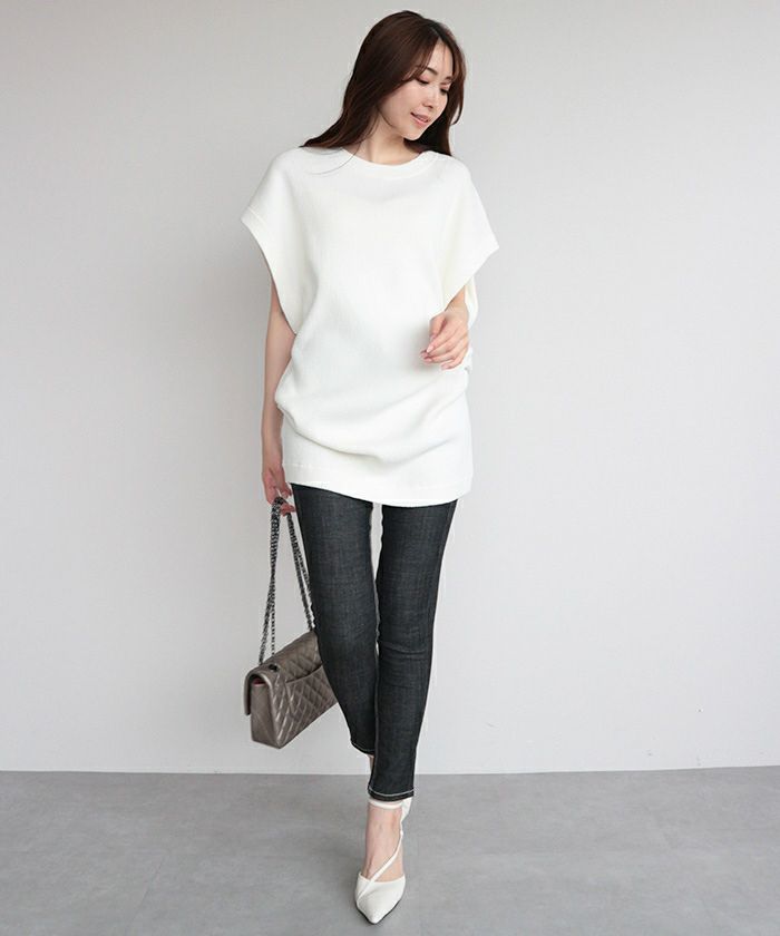 スキニーやクロップド丈のパンツを合わせた大人のレイヤードコーデもおすすめです。