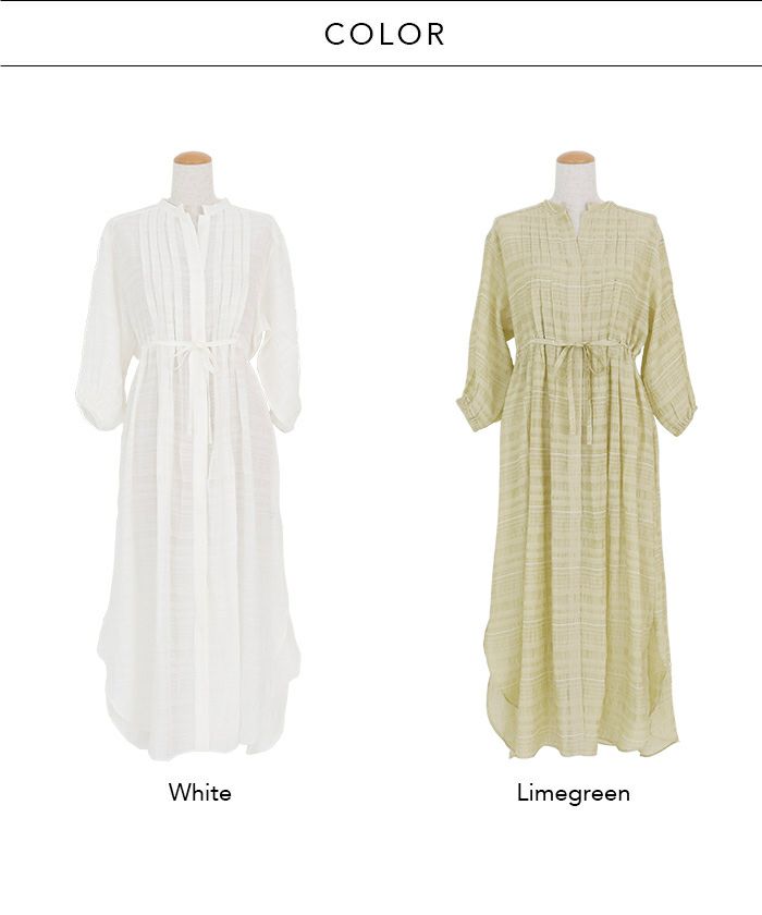 中太の横ストライプ織の模様とシボが効いた、ニュアンスのある質感の生地が特徴のマキシシャツワンピース。