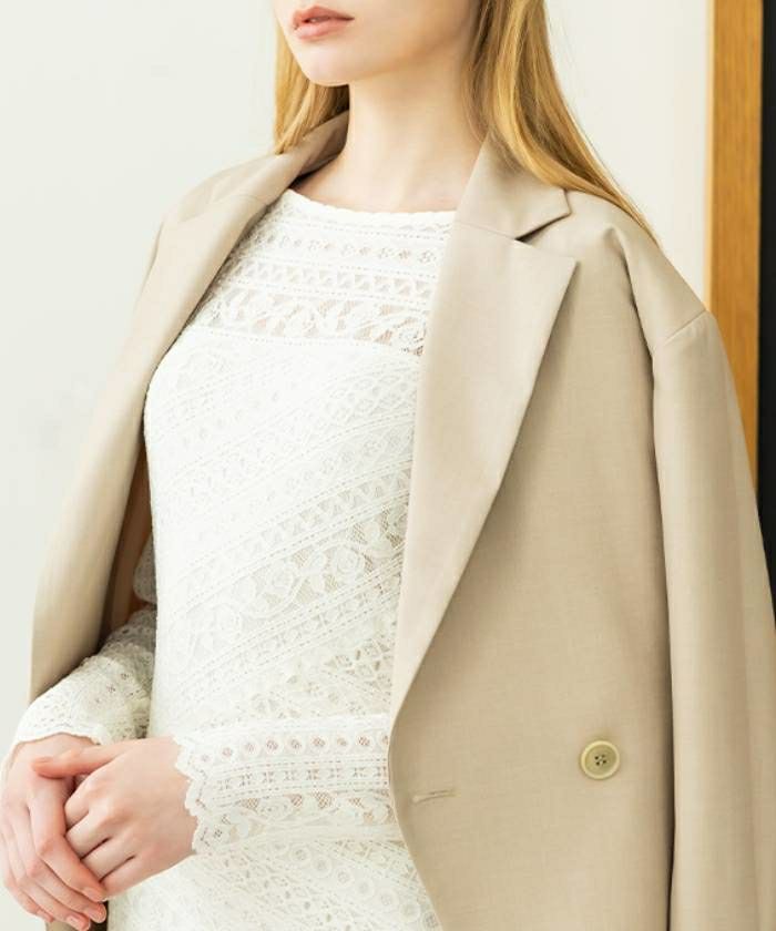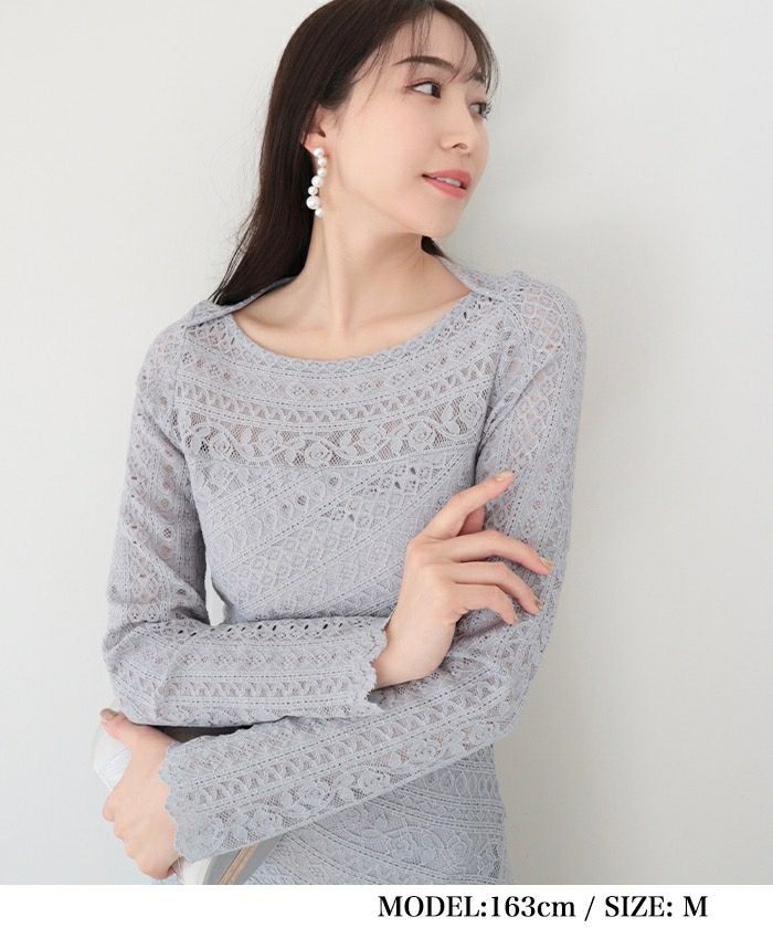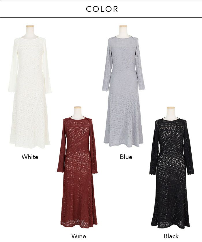 人気のジャージーレースシリーズ。肩肘張らない、リラクシーな大人のワンピース。伸縮性の高いジャージーレースを使用することで、レース特有の上品さを優しく脱力し、サラッとデイリーにご着用いただけます。捻りを効かせた縦・横・斜めのレースデザインが、他と差がつくAMBIENTらしい逸品。身体のラインに沿いつつも、裾に向かって広がるシルエットで程よいラフさを演出。デコルテとのバランスが計算された浅めのボートネックとほんのり透けるロングスリーブが大人にちょうど良い肌見せバランスを叶えます。しっかり着丈を設けたS,M展開で、幅広い身長の方に合うよう拘りました。優しいブルーを差し色に、可憐なホワイト、上品なワイン、コントラストを効かせたブラックオールシーズン活躍する4色展開。