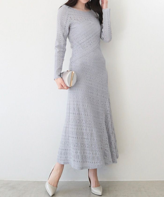 ジャージーレースロングスリーブフレアワンピース