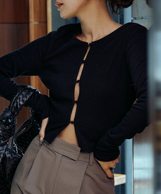 伸縮性が高く柔らかい風合いと程よいフィット感でどんな体型の方でもスタイルアップが可能なアイテムは今季のムードを反映した豊富な7色展開。