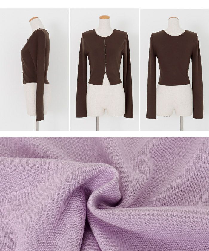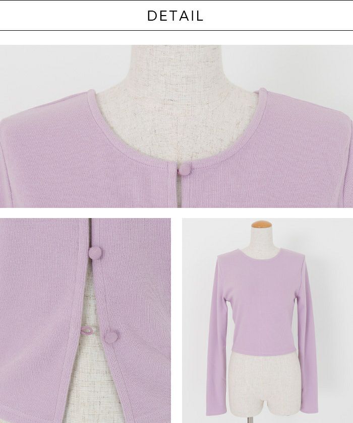 中心のくるみボタンは着用時に均等な開きが出るよう間隔にこだわりました。