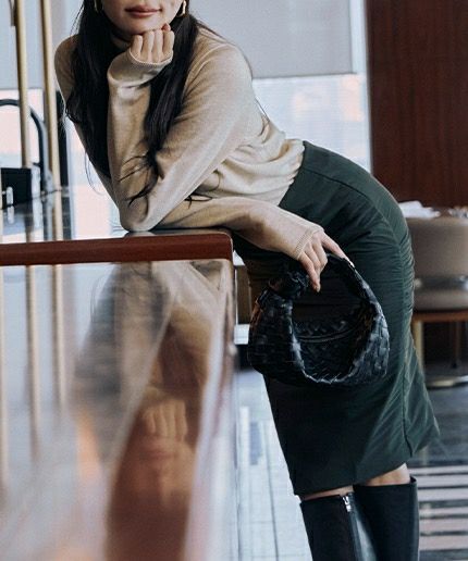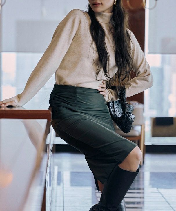 シンプルなニットやシャツを合わせるだけで異素材ミックスのスタイリングが完成し、ワンランク上の印象へと導いてくれます。