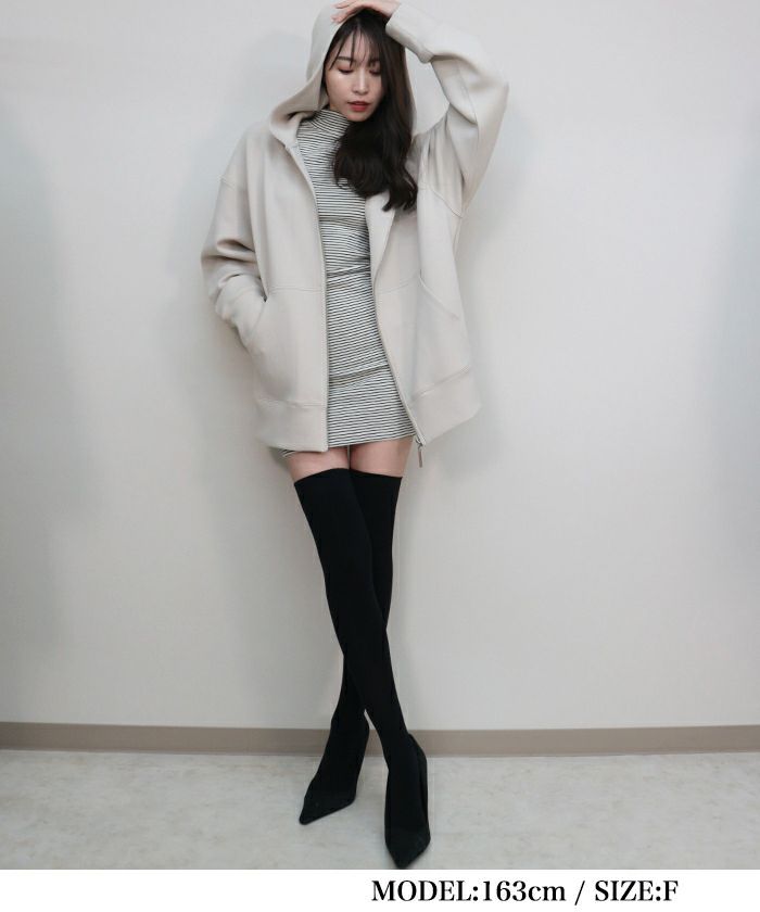 フィンガーホール付きで、手の甲にルーズにくしゅっとたるませる袖丈の長さが手元のおしゃれを楽しめます◎