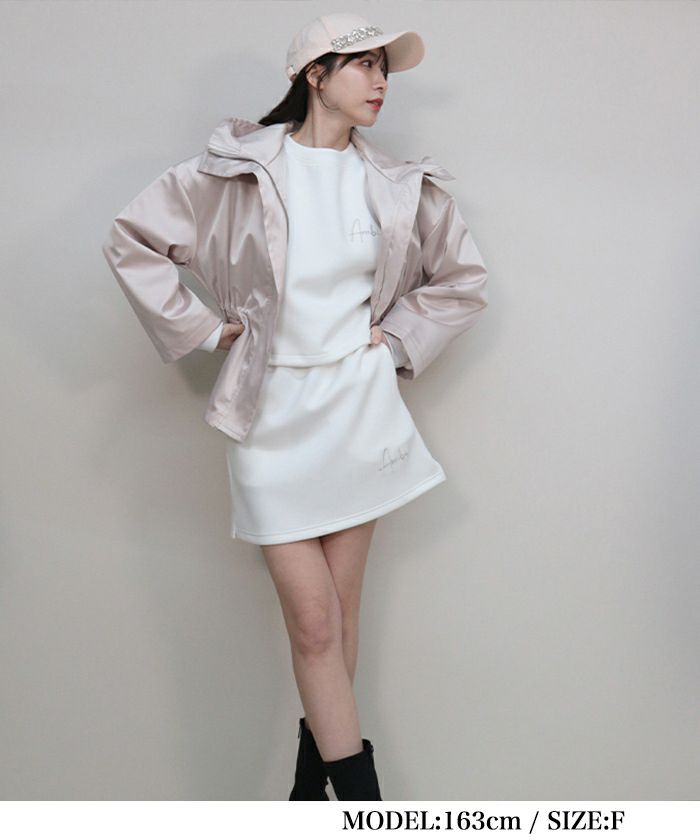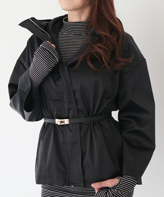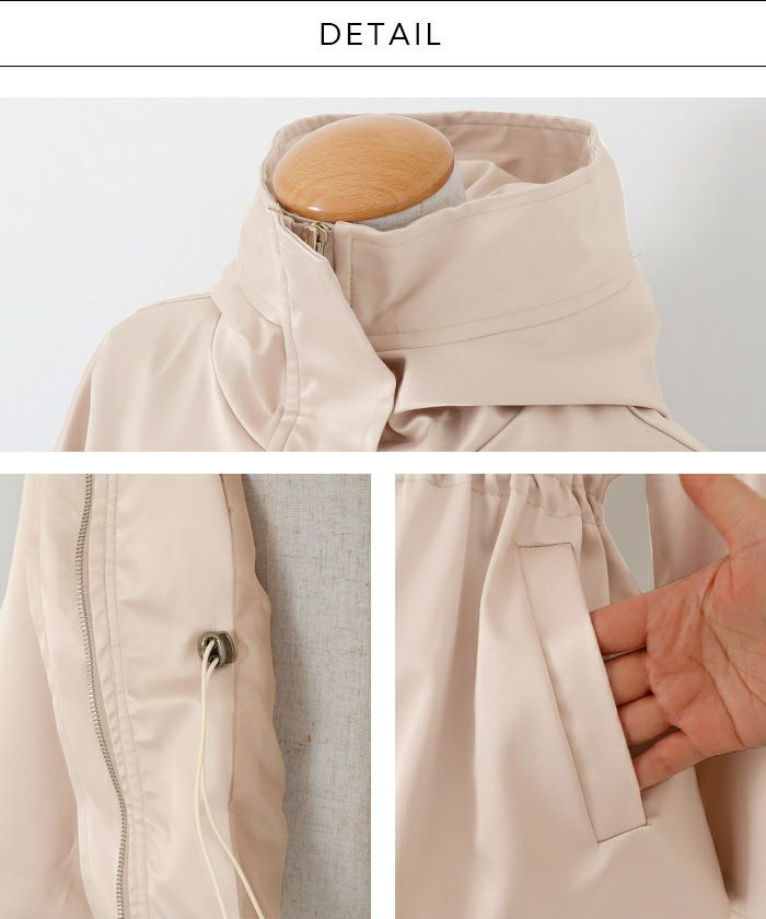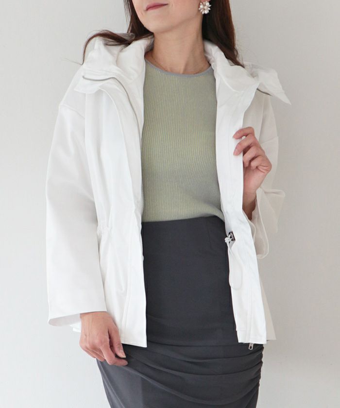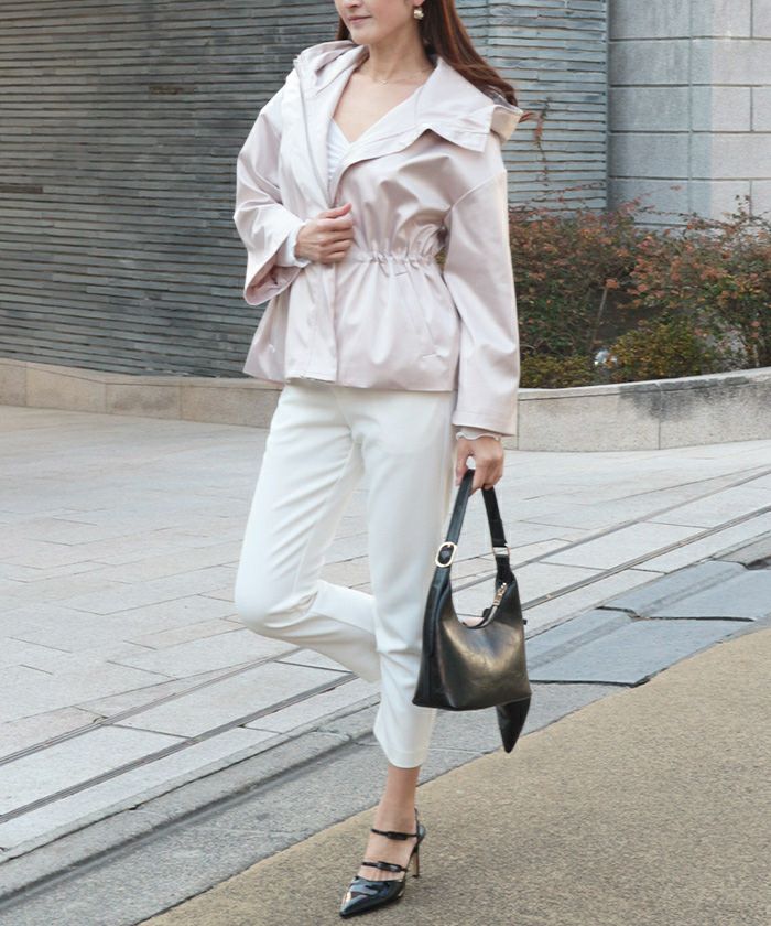 内側のウエスト位置にスピンドルコードを施しているので絞ってシルエットをシェイプさせることが可能。