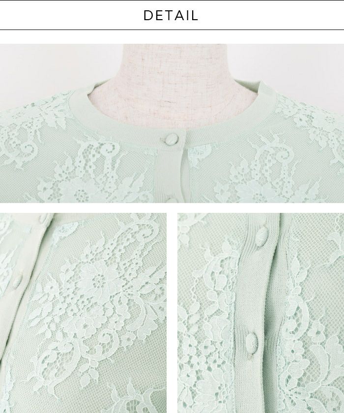 フロントに繊細なレースをあしらい、エレガントシックなムードが漂うカーディガン。