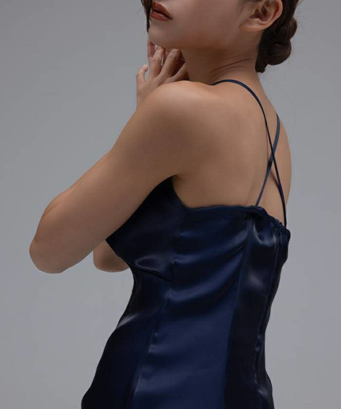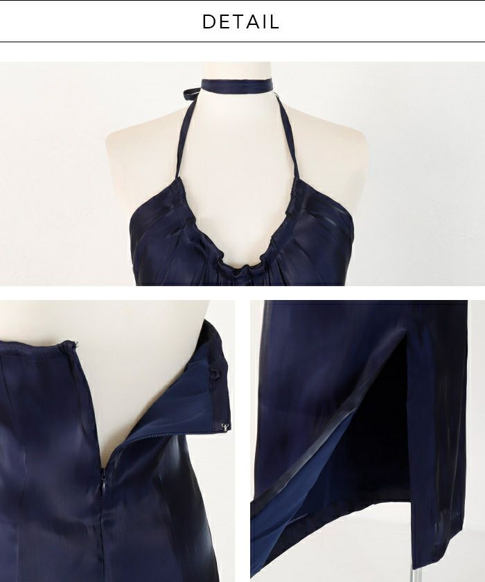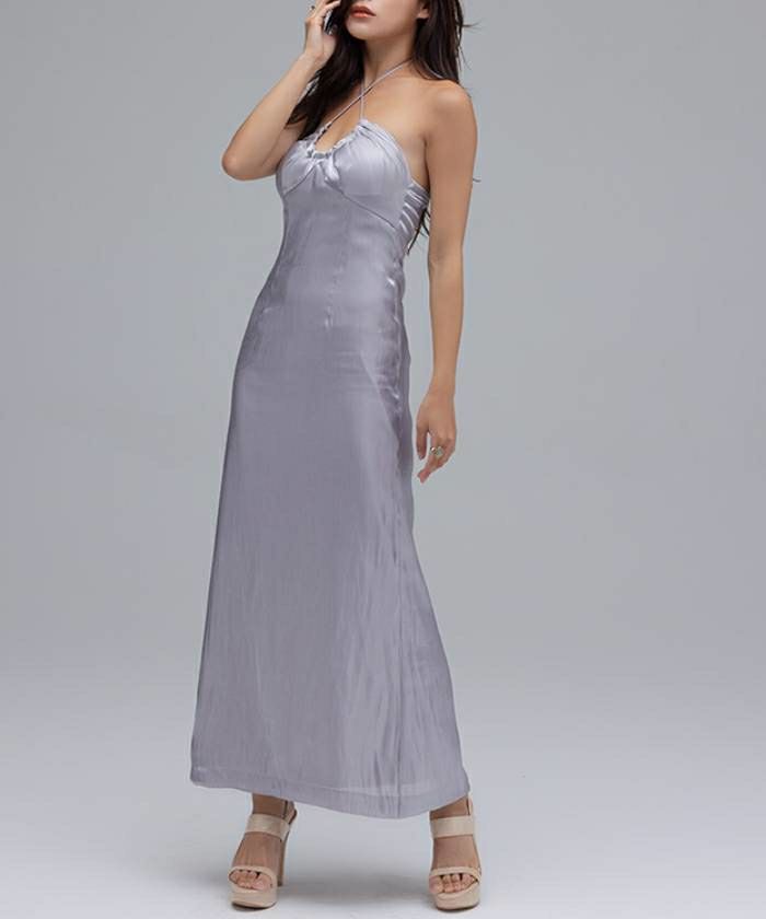 サテンストリングネックマキシドレス