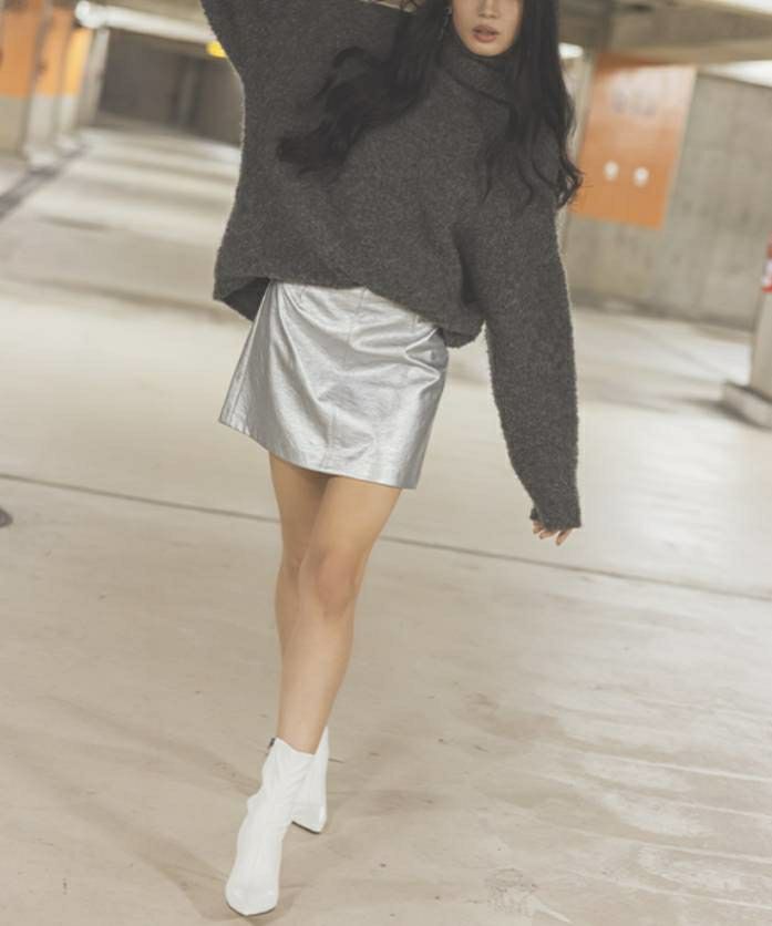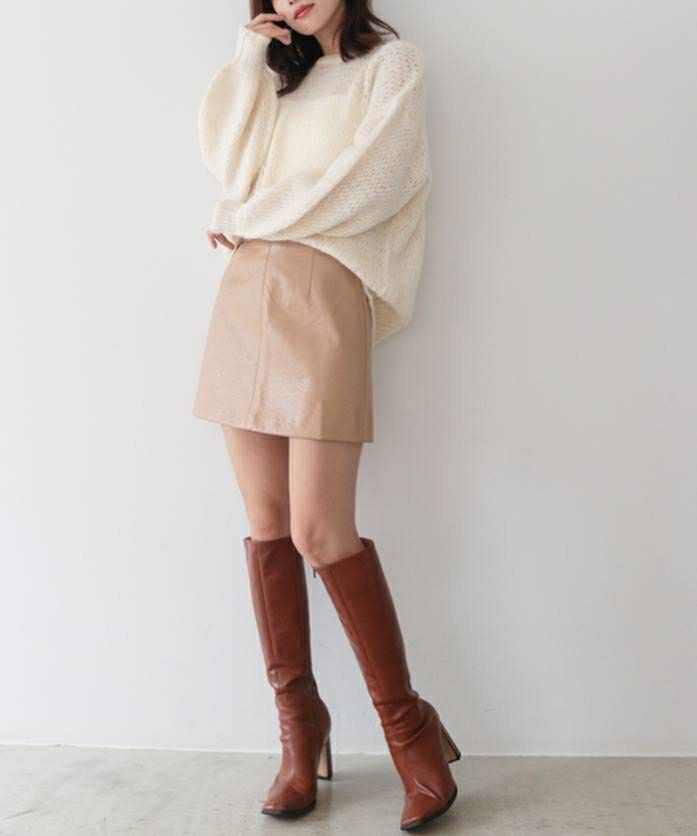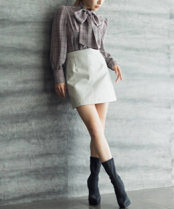 大人女子に丁度いい、レザーミニスカート。