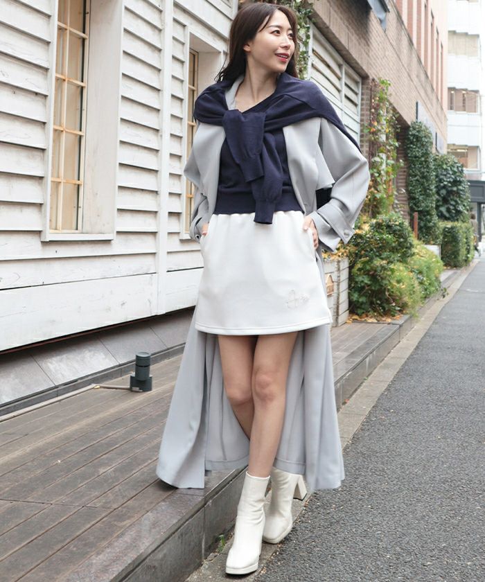 両脇にはさりげなくスリットをあしらい、計算された着丈で脚長効果を約束します。