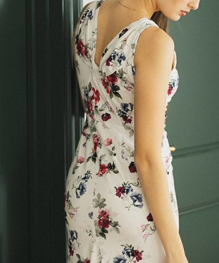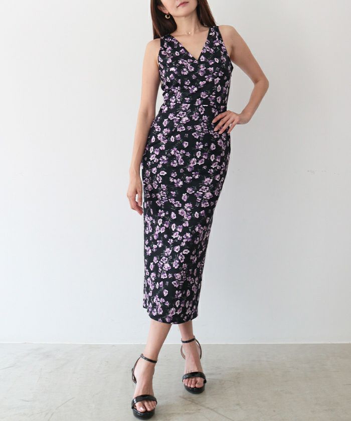上品な花柄と細やかなディテール使いで美しいシルエットを生んだ、リュクスな1着。