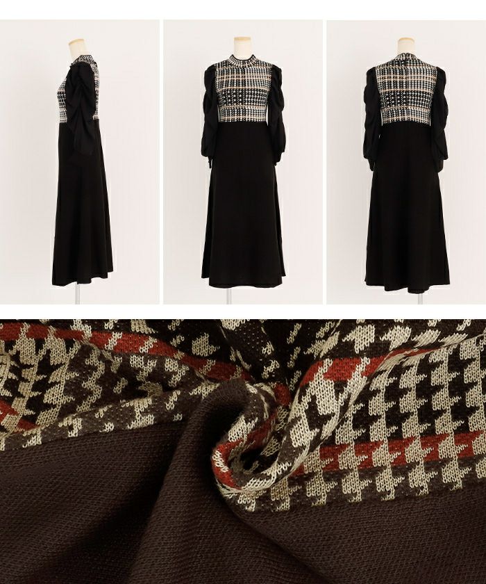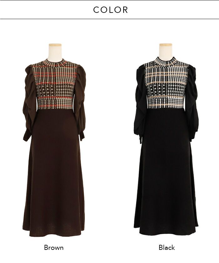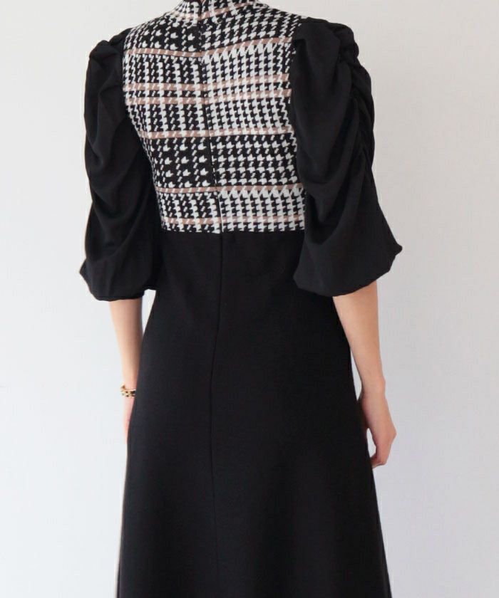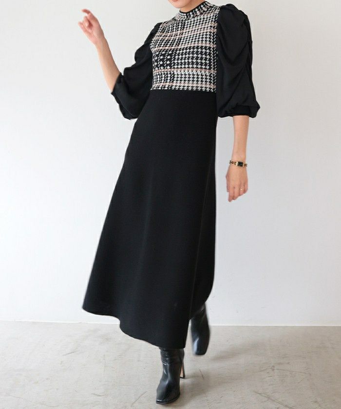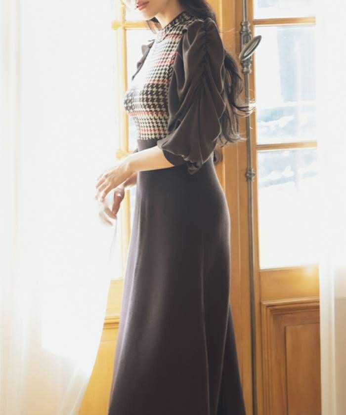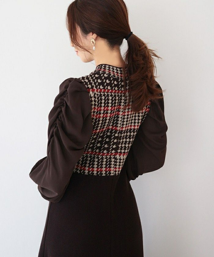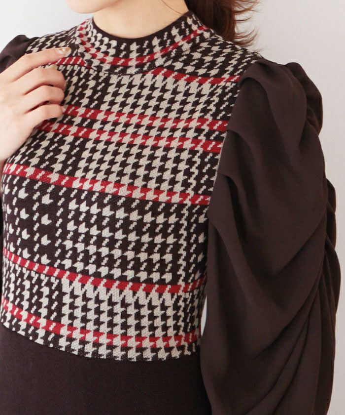 格子柄と無地で切り替えたサラリとした質感のニット地で、一枚でコーデが完成する優れもの。
