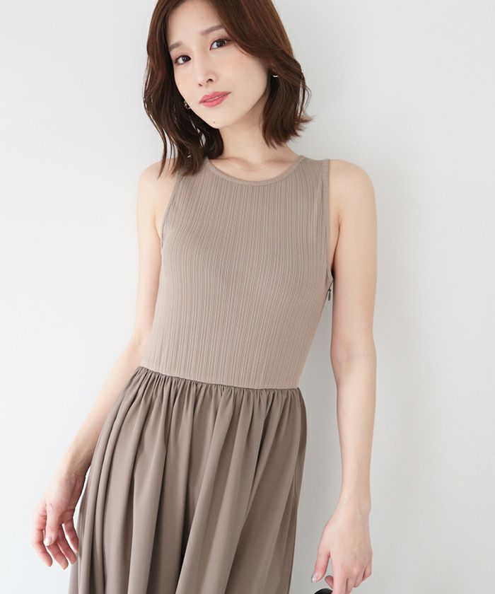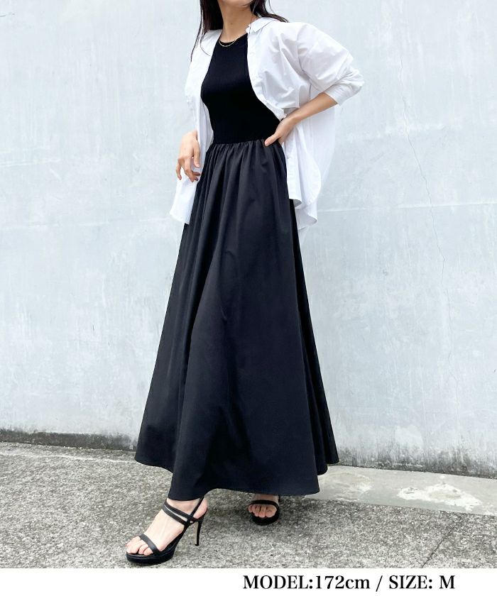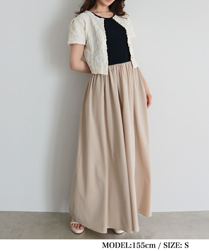 ウエスト位置で切り替えているので、ショート丈の羽織物とも相性抜群です。