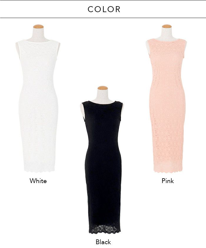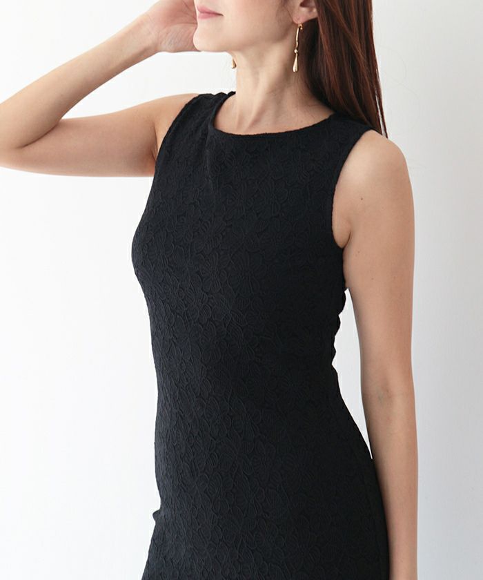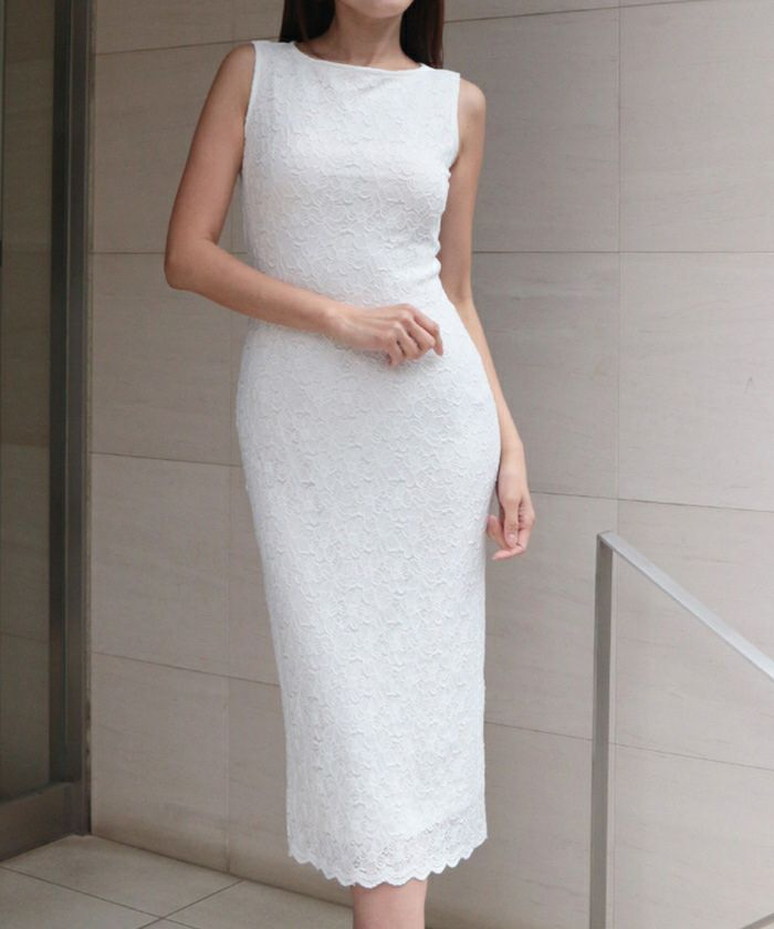 伸縮性の高い花柄のレースが身体のラインにフィットし、品よく女性らしく演出するペンシルシルエット。