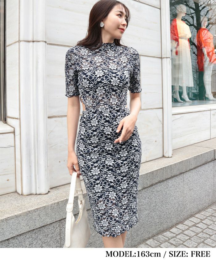伸縮性たっぷりの総レースワンピース。