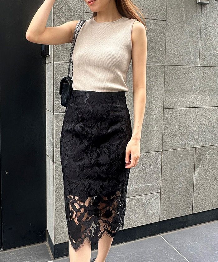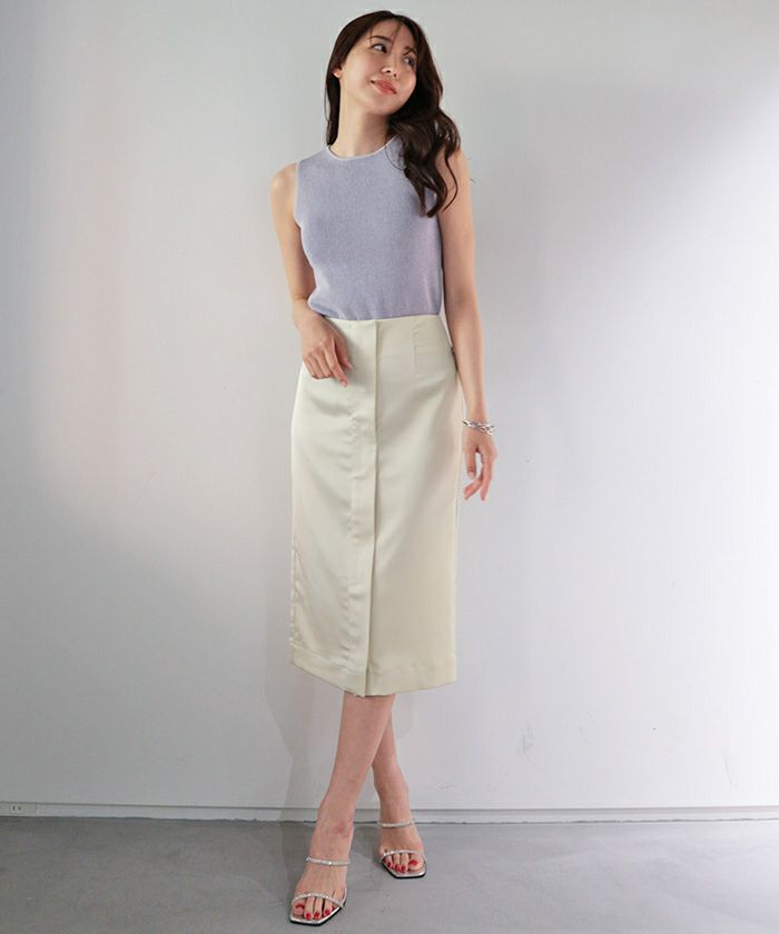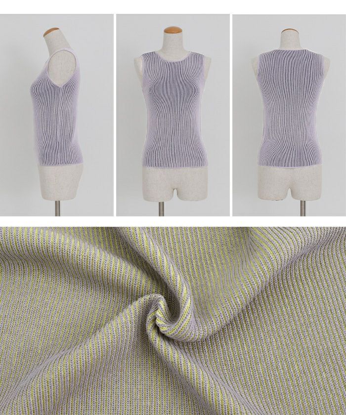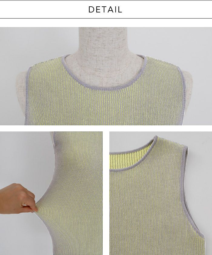 商品情報 ベーシックながらも、捻りを効かせたデザインで差がつくノースリーブニット。