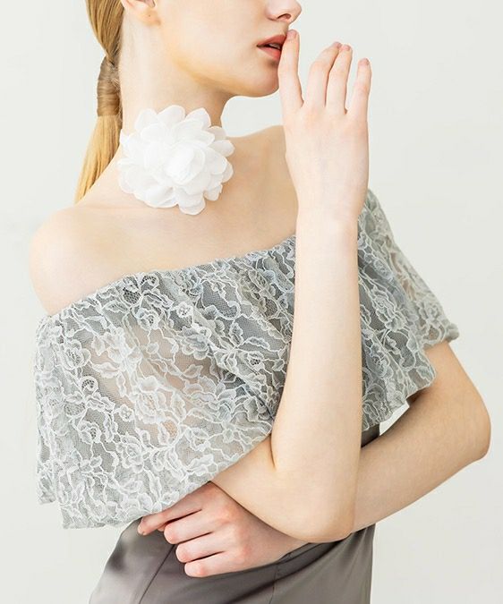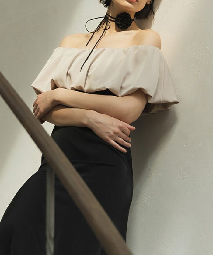 パフの裏面にはオーガンジーを重ねたことで適度なハリとボリューム感を出し、オフショルダーにした時に華奢なデコルテを引き立てます。