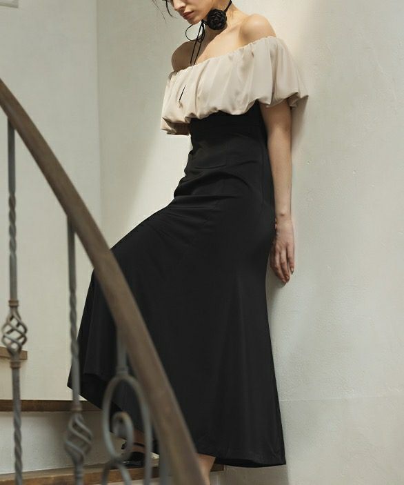 緩やかに裾にかけて広がるソフトマーメイドシルエット。