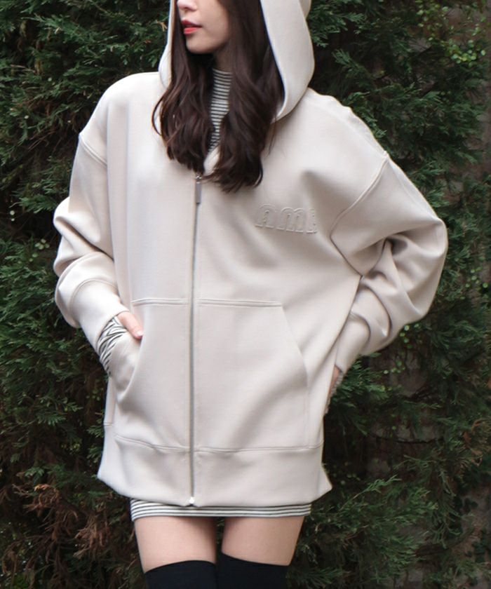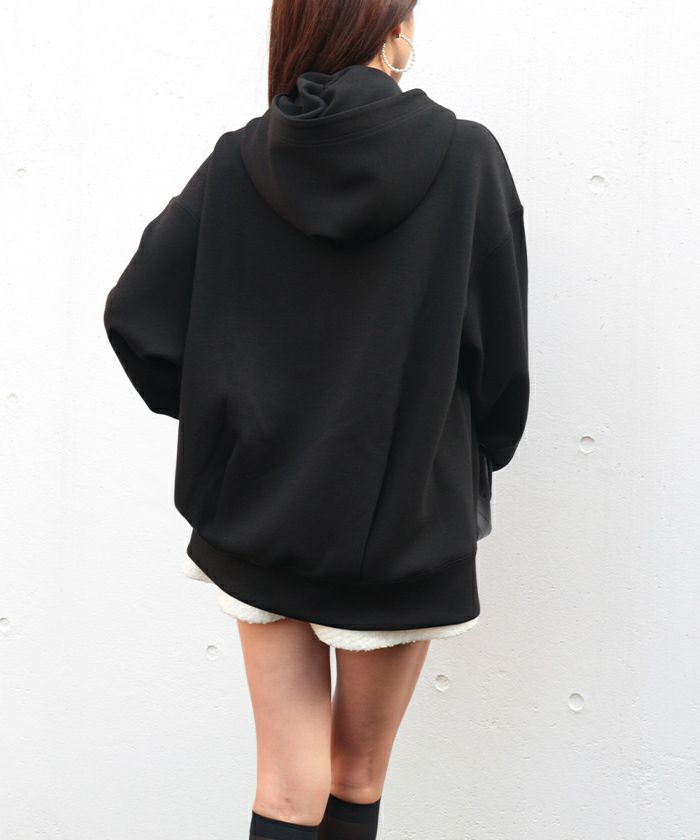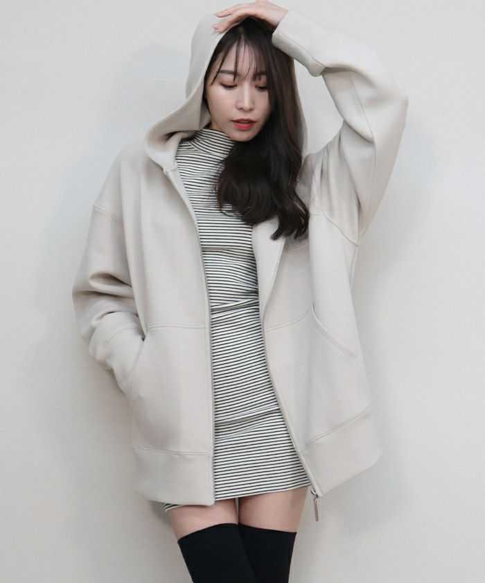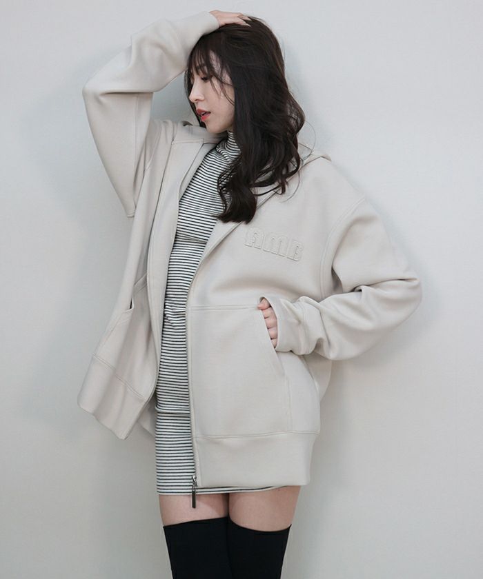 モダンな印象に着地するジップアップパーカー。