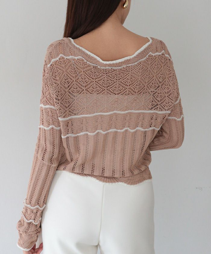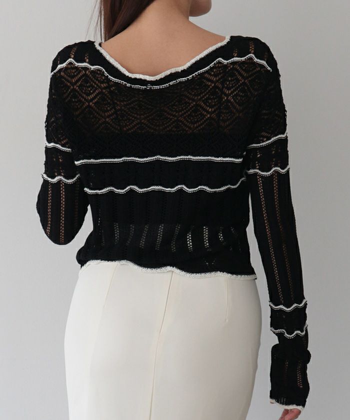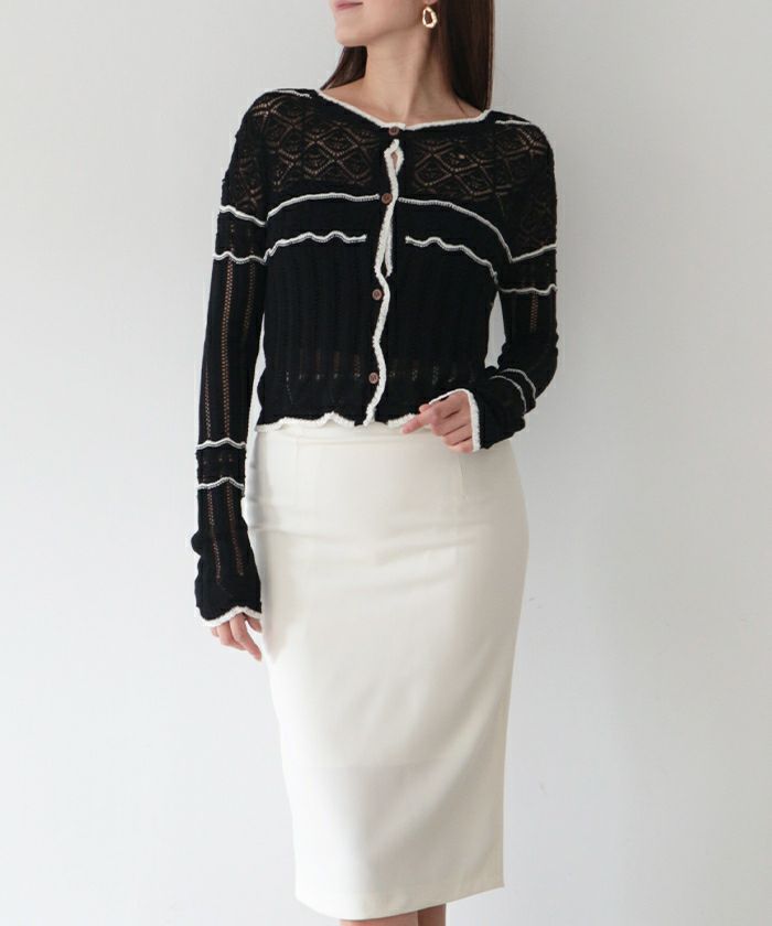 ダイヤネックや裾周りの縁にスカラップリブを施し、細部にもこだわり抜いたアイテムです。