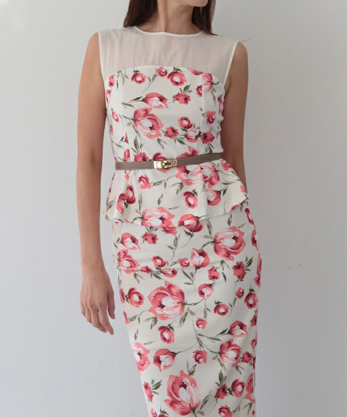 共生地で【CFVA0452 フラワープリントハイウエストペンシルスカート】も展開しており、