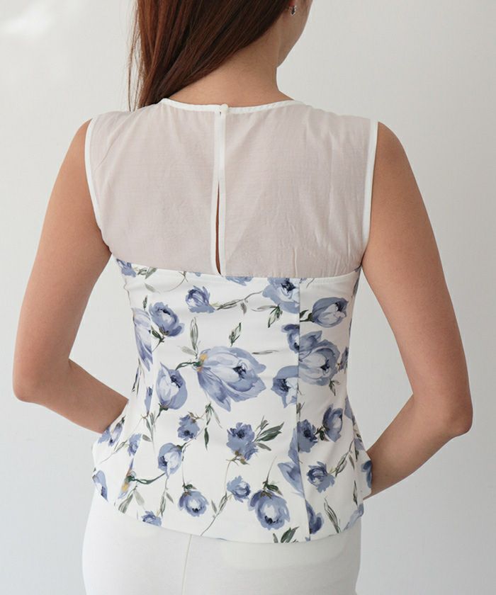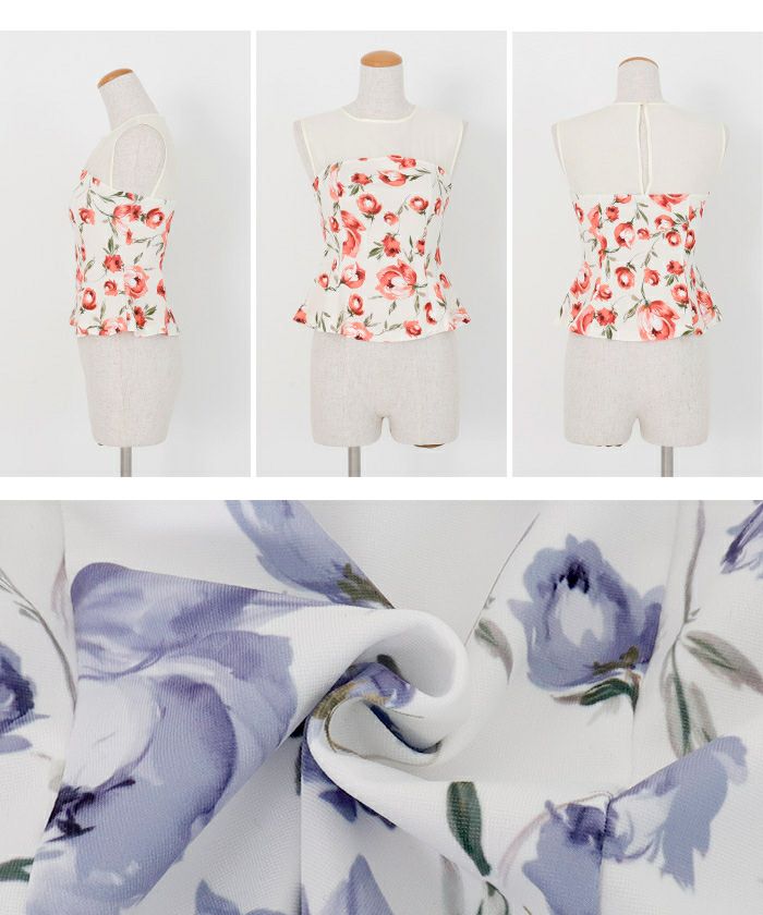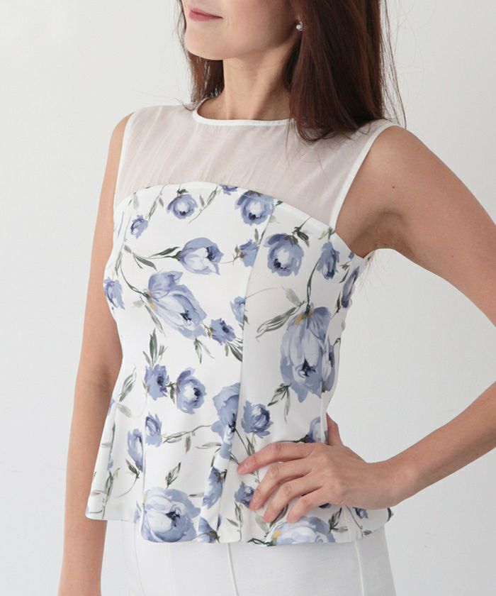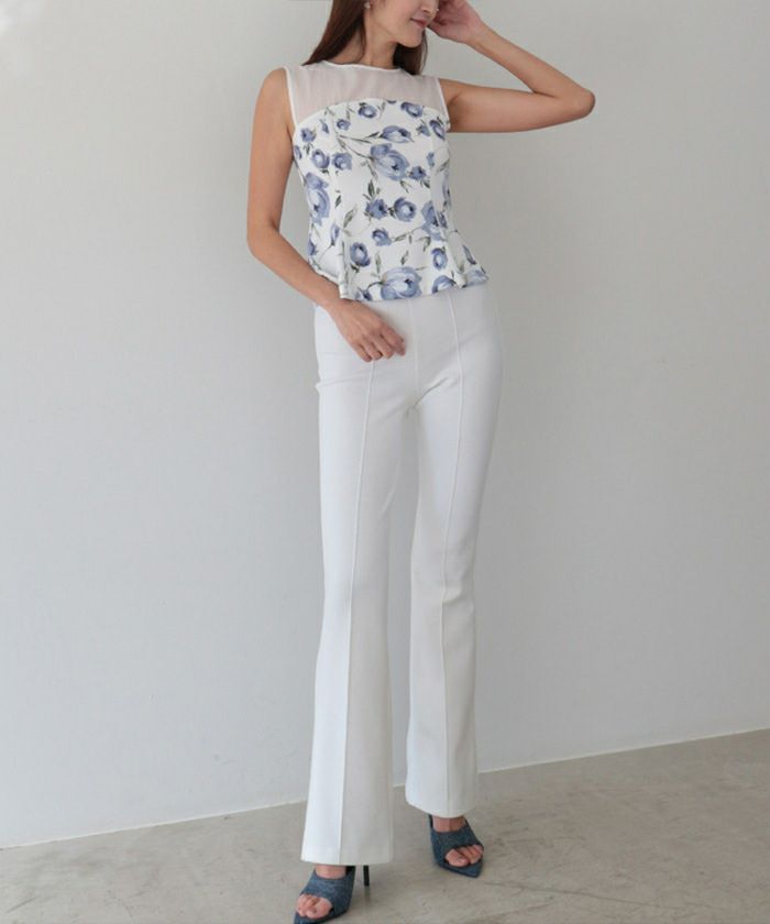 ストレッチ性の高いスムースジャージー素材を使用した華やかなフレアトップス。