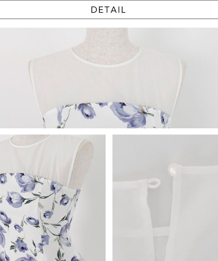 デコルテ、バックにシアー生地をドッキングし涼しげで女性らしい印象に仕上げました。
