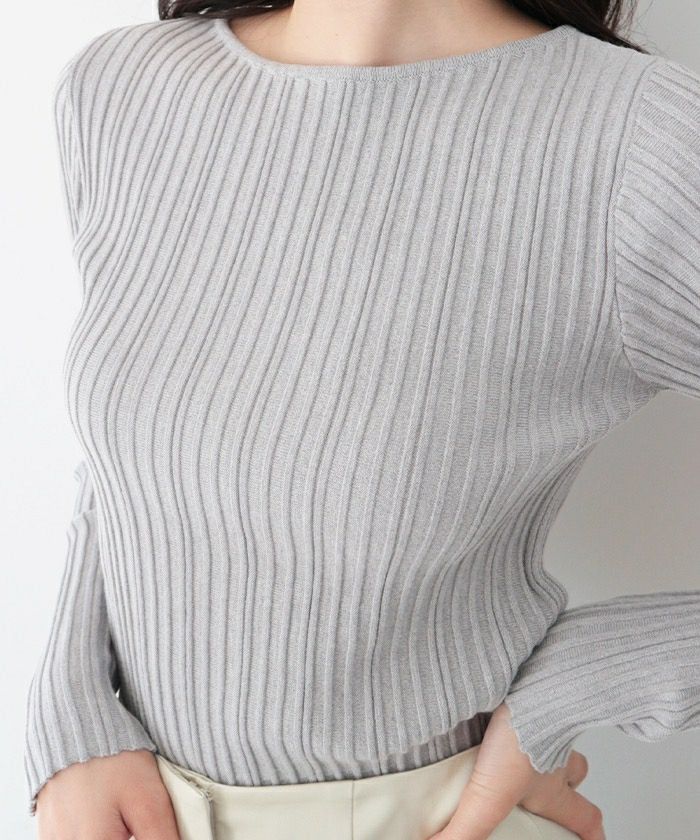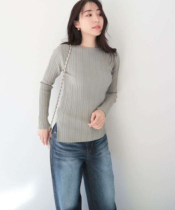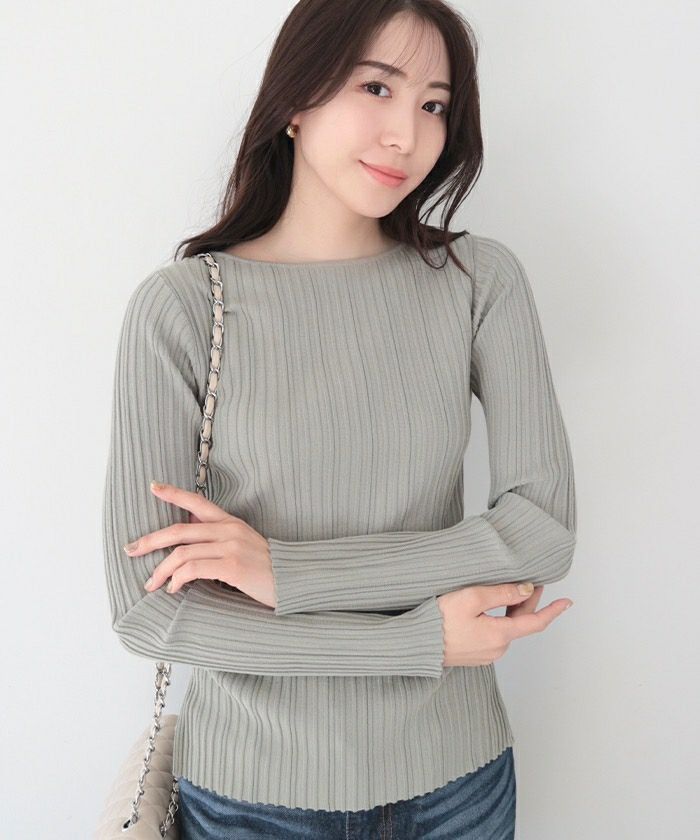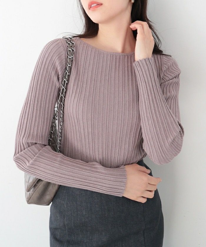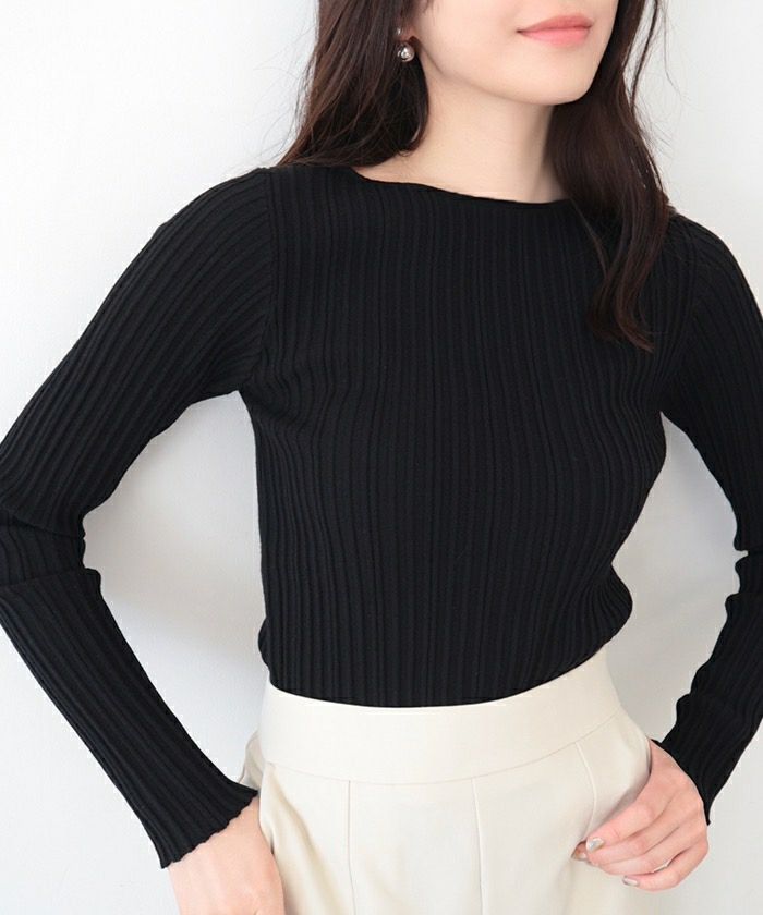 ランダムガーターボートネックニットトップス