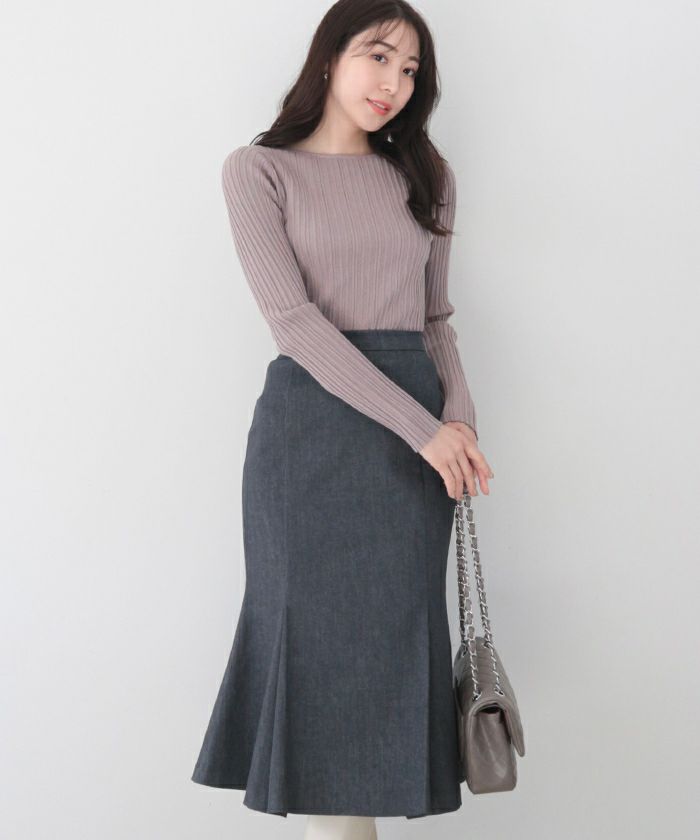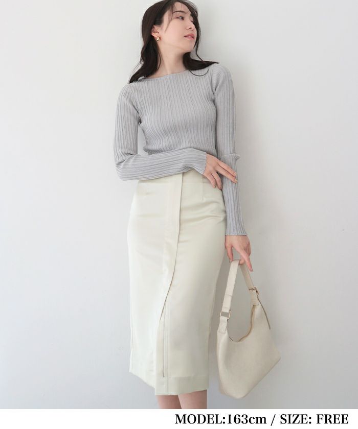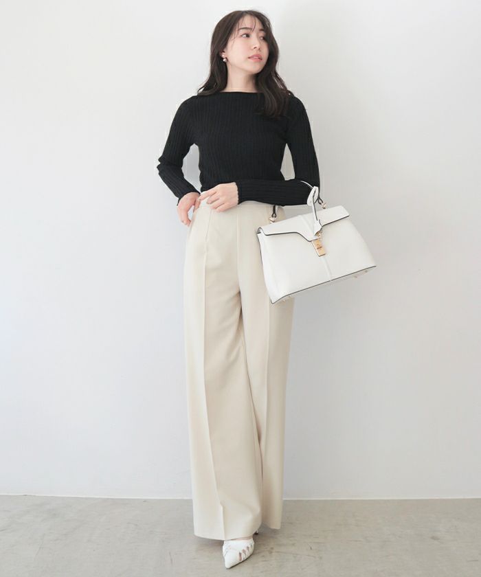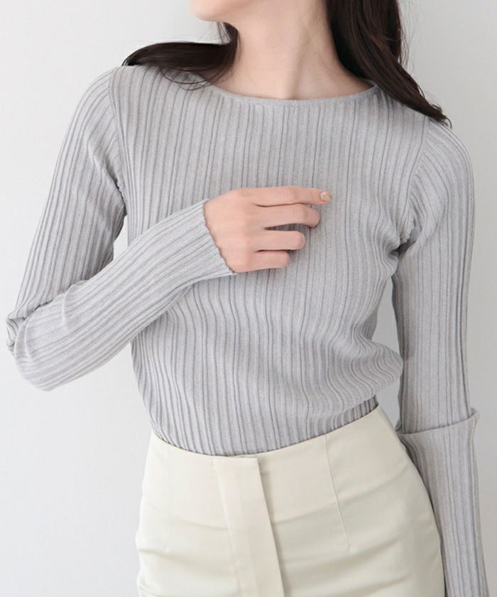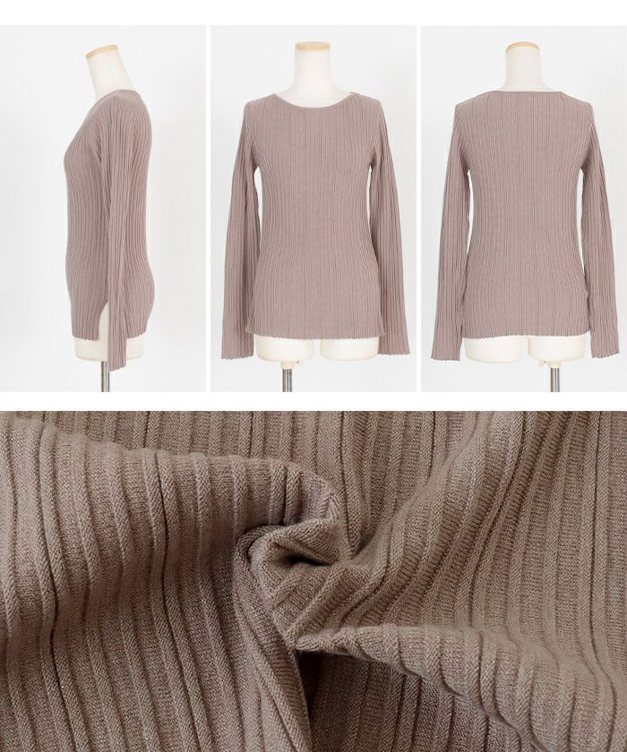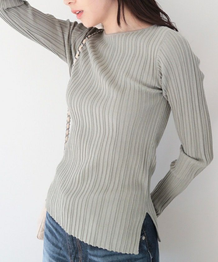ランダムガーターボートネックニットトップス