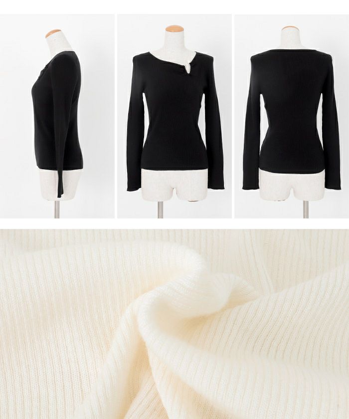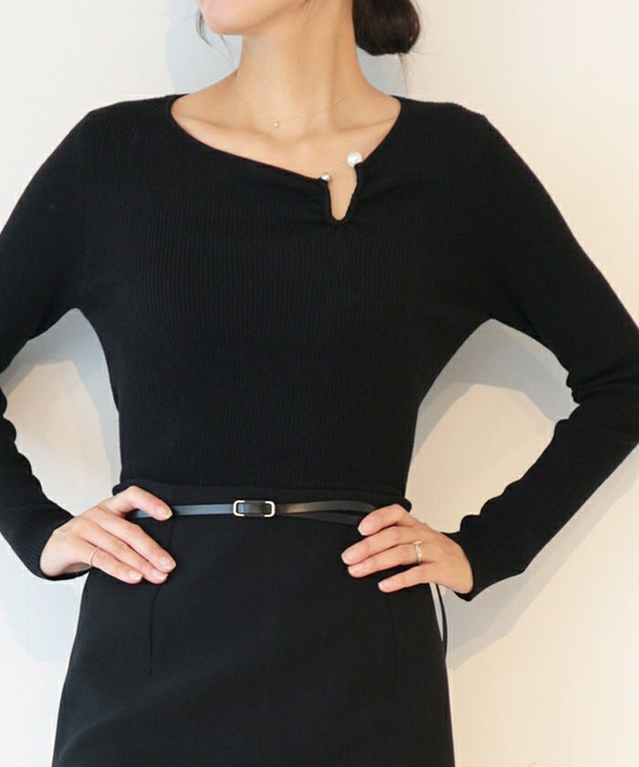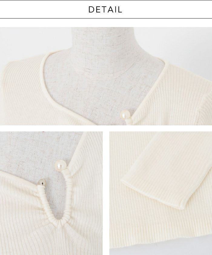 ・ネックスリットにパール&シルバーストーンパーツデザイン