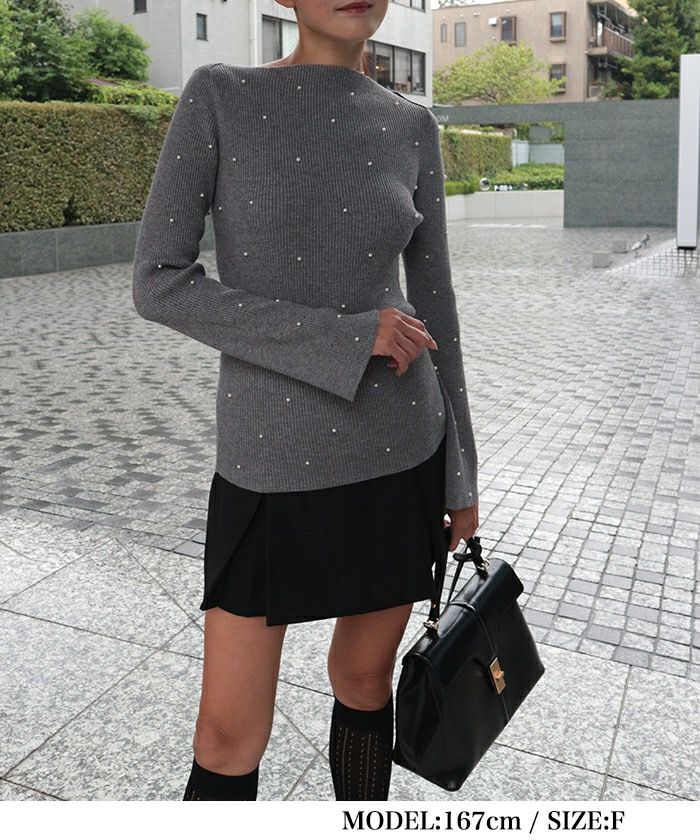 少し長めの着丈設定でボトムスを選ばないデザインなので、スカートやパンツにイン・アウトの違いでさまざまな雰囲気をお楽しみいただけます。