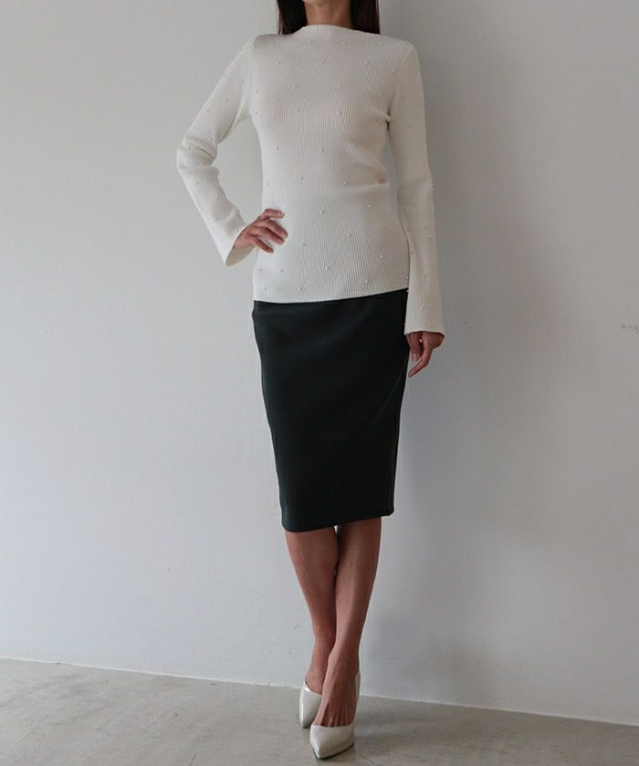 すっきりとしたボディのシルエット、ほんのりと広がる細身のスリーブがぐっとシックで大人な印象に。