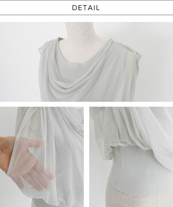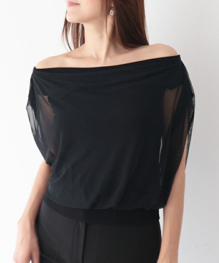 ニットとチュールを重ねた上質感ある2wayオフショルニット。