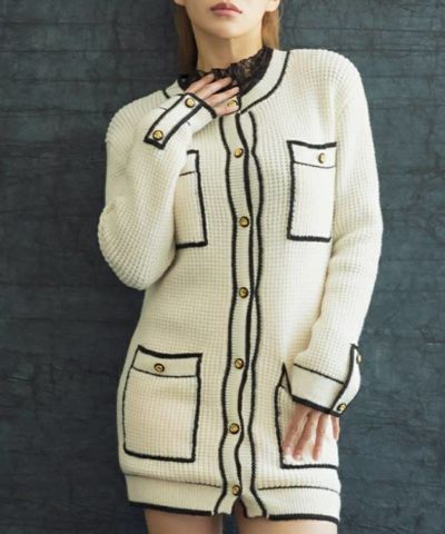 ワッフルバイカラーロングニットカーディガンのレビュー
