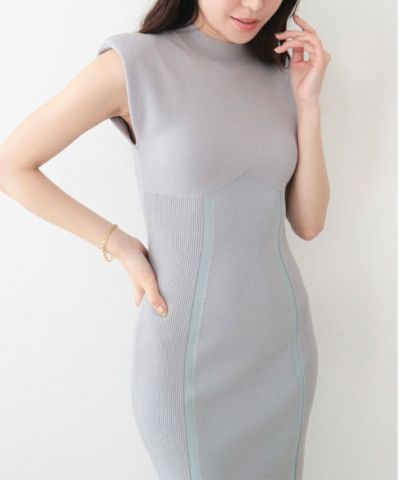 コントラストリブニットワンピース