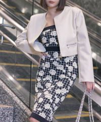 エンボスフラワージャガードニットベアワンピース